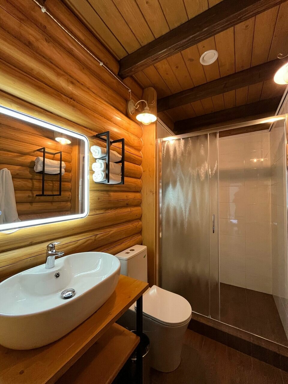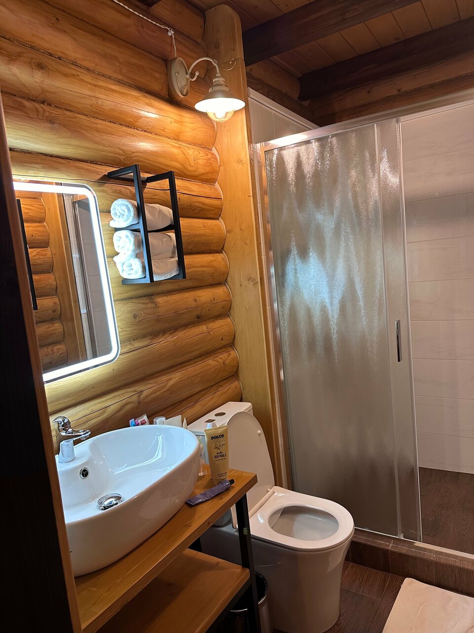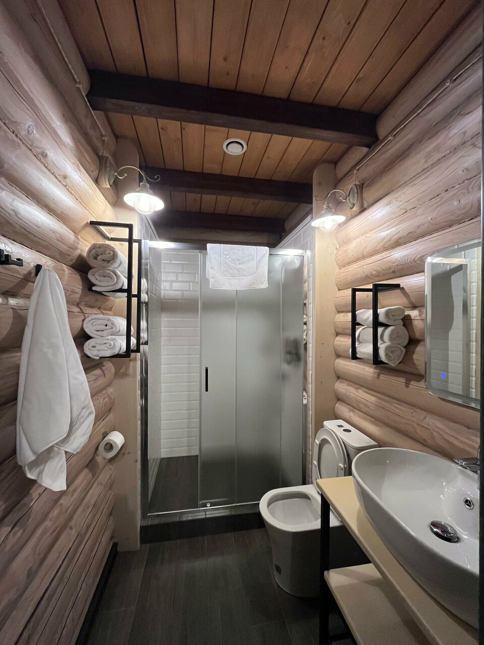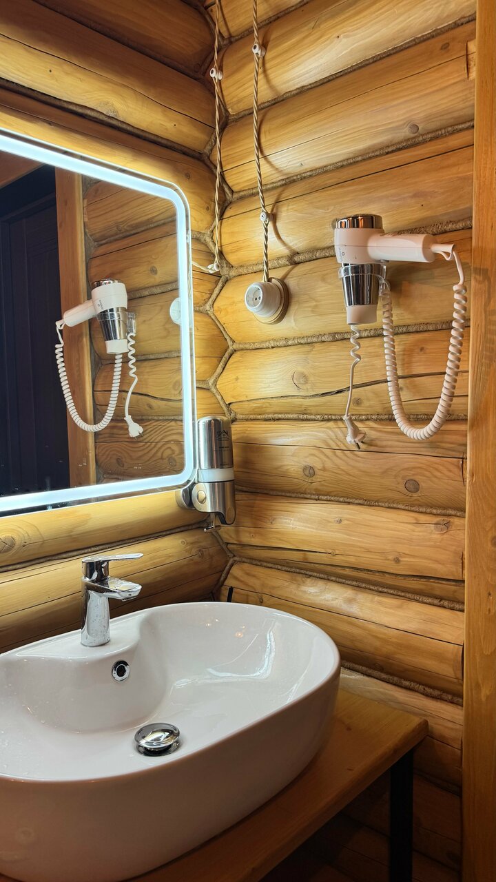 Я в восхищение от прибывания в этом отеле. Домики очень просторные, все настолько добротно выполненно из качественных материалов, идеальная чистота. Из-за того что отель расположен рядом с трассой предполагали, что будет мешать шум от проезжающего транспорта, но это оказалось не так. Дом очень тёплый, удобные подушки и матрасы, чистое белье. Есть все необходимое для комфортного проживания. Холодильник, микроволновка, чайник и чай в наличии. Все хорошо работает, новые смесители, просторная душевая кабина, в наличии мыло и гель для душа. Однозначно рекомендую это место! Обязательно оснавлюсь здесь снова при необходимости!