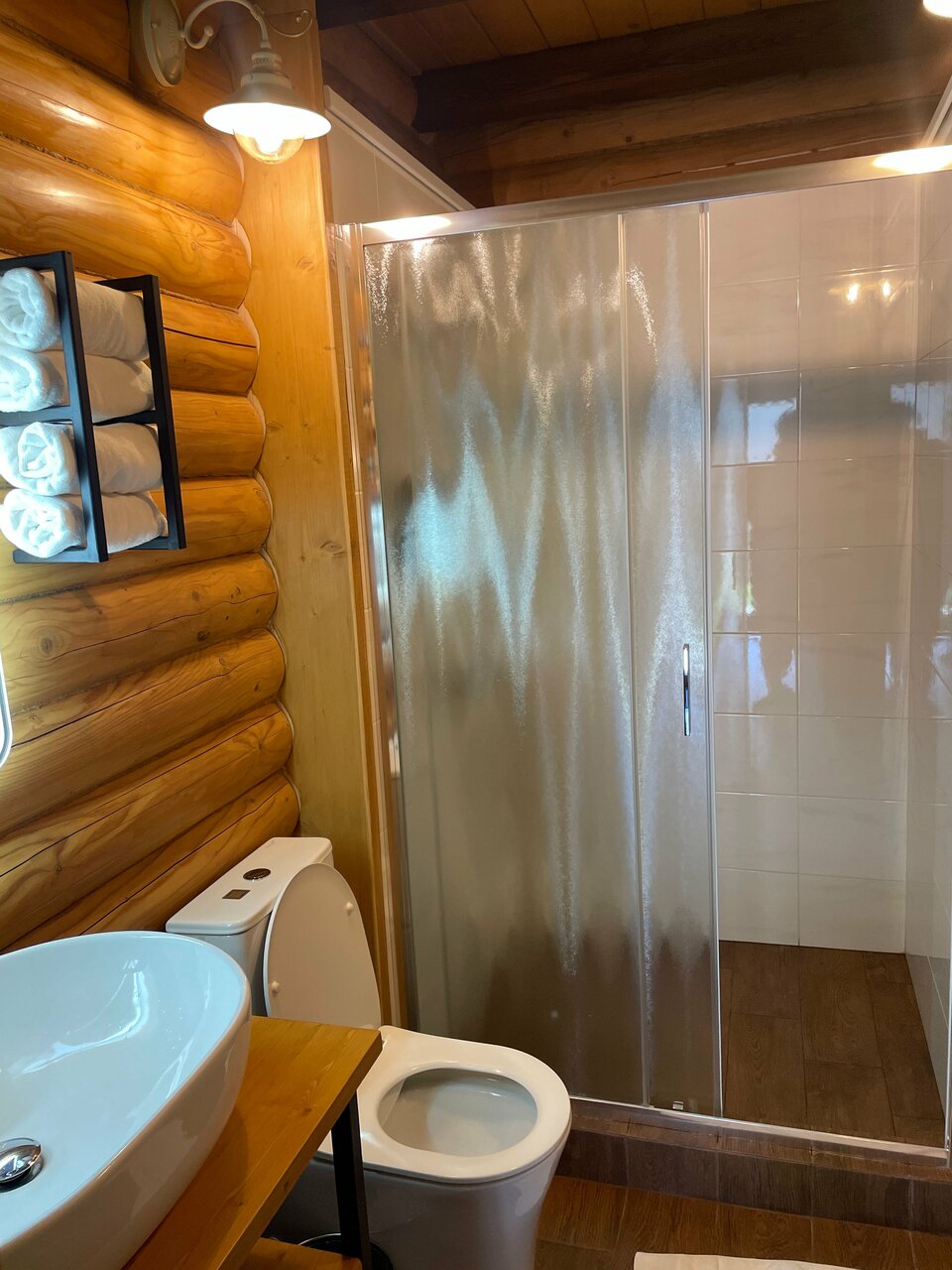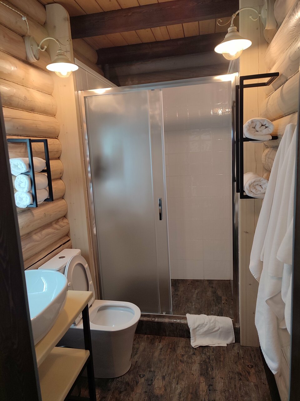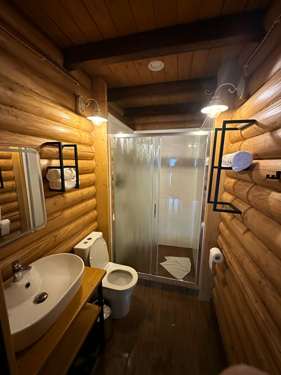 Я в восхищение от прибывания в этом отеле. Домики очень просторные, все настолько добротно выполненно из качественных материалов, идеальная чистота. Из-за того что отель расположен рядом с трассой предполагали, что будет мешать шум от проезжающего транспорта, но это оказалось не так. Дом очень тёплый, удобные подушки и матрасы, чистое белье. Есть все необходимое для комфортного проживания. Холодильник, микроволновка, чайник и чай в наличии. Все хорошо работает, новые смесители, просторная душевая кабина, в наличии мыло и гель для душа. Однозначно рекомендую это место! Обязательно оснавлюсь здесь снова при необходимости!