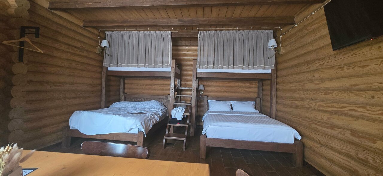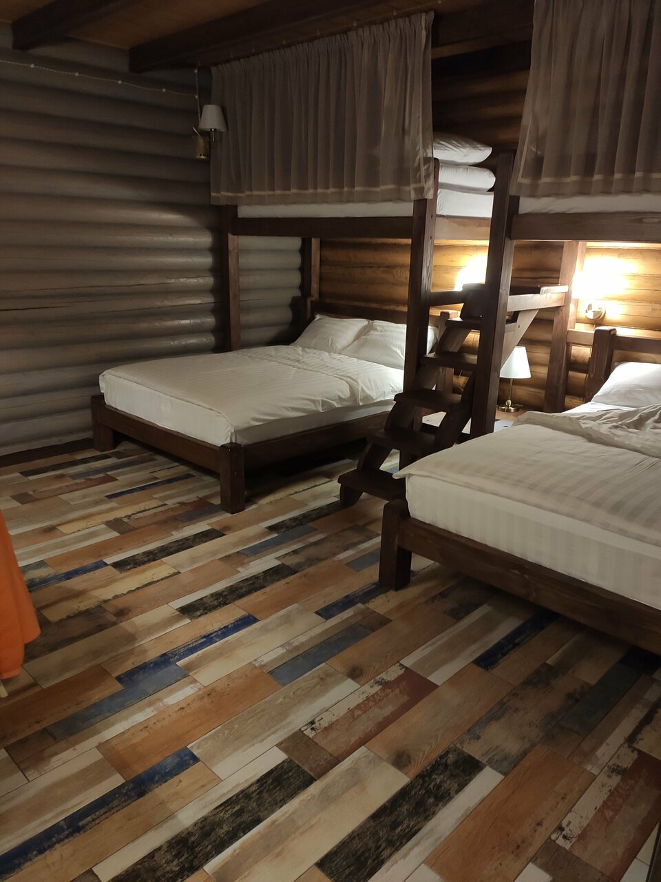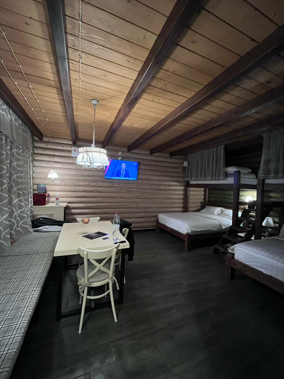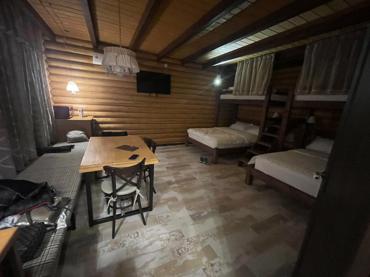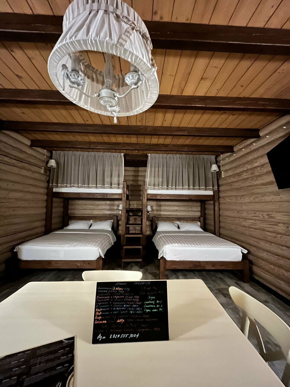Очень клёвое место. Номер большой. Сказали на 4, но реально 2 двуспальные кровати и 2 односпальные. Все чисто. Еда вкусная, принести прям в номер