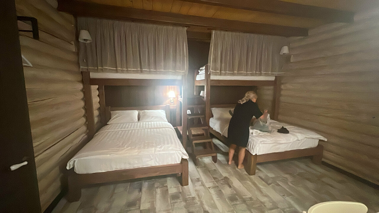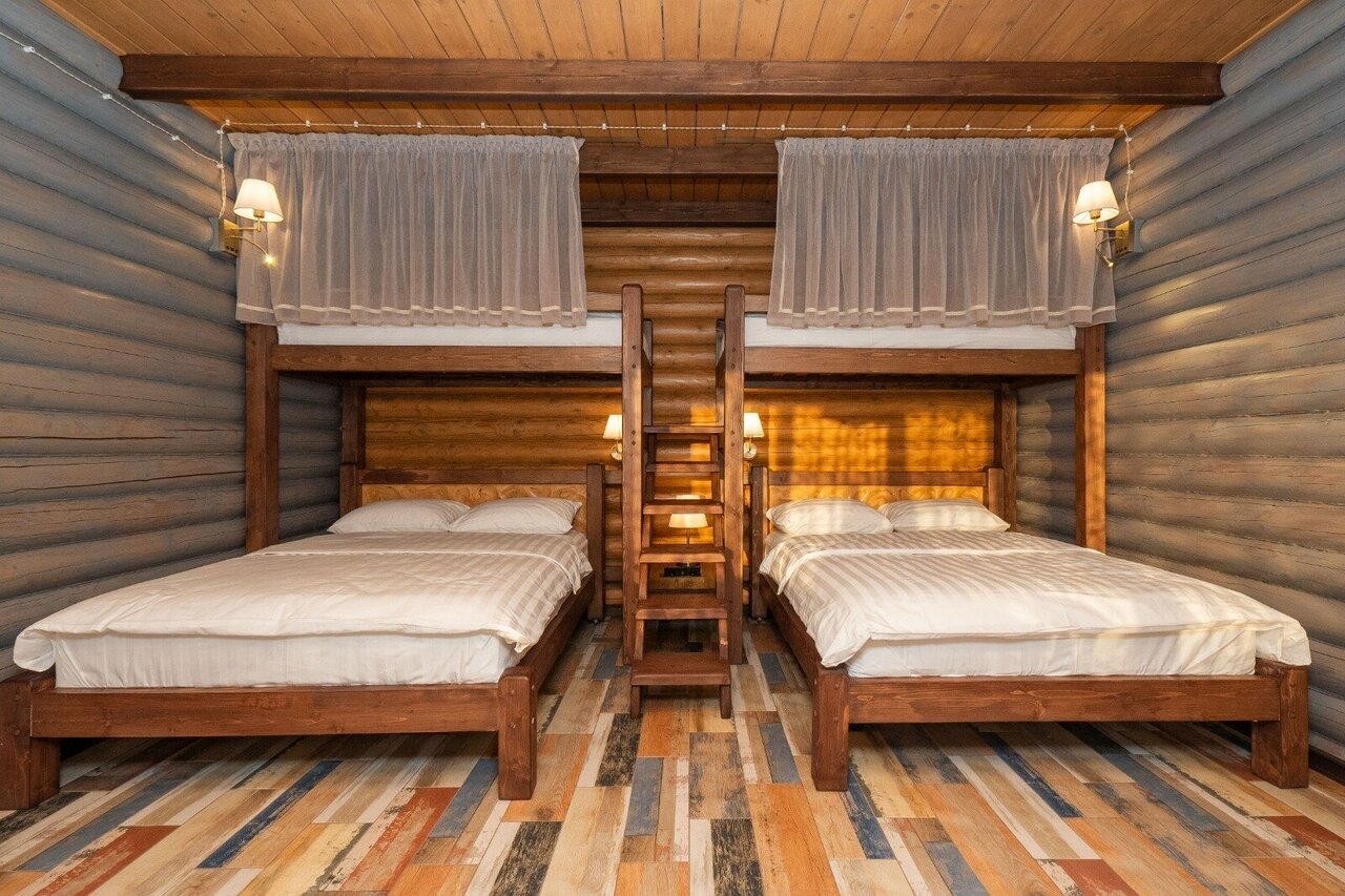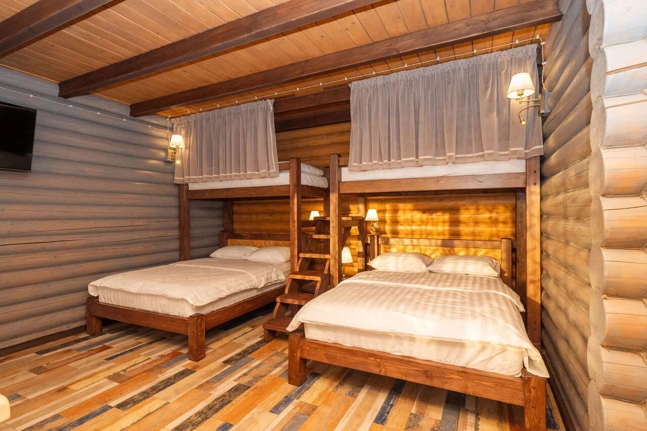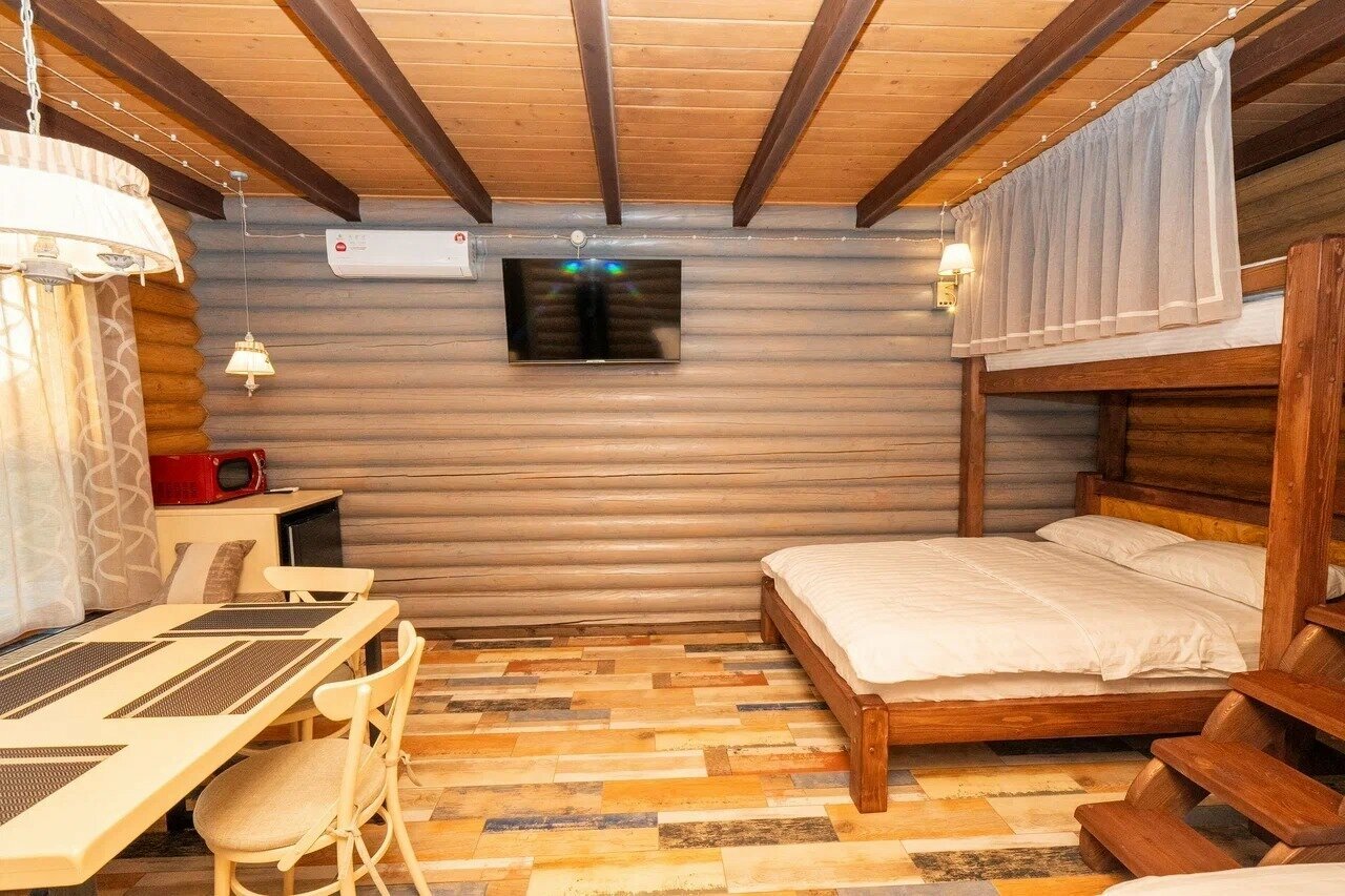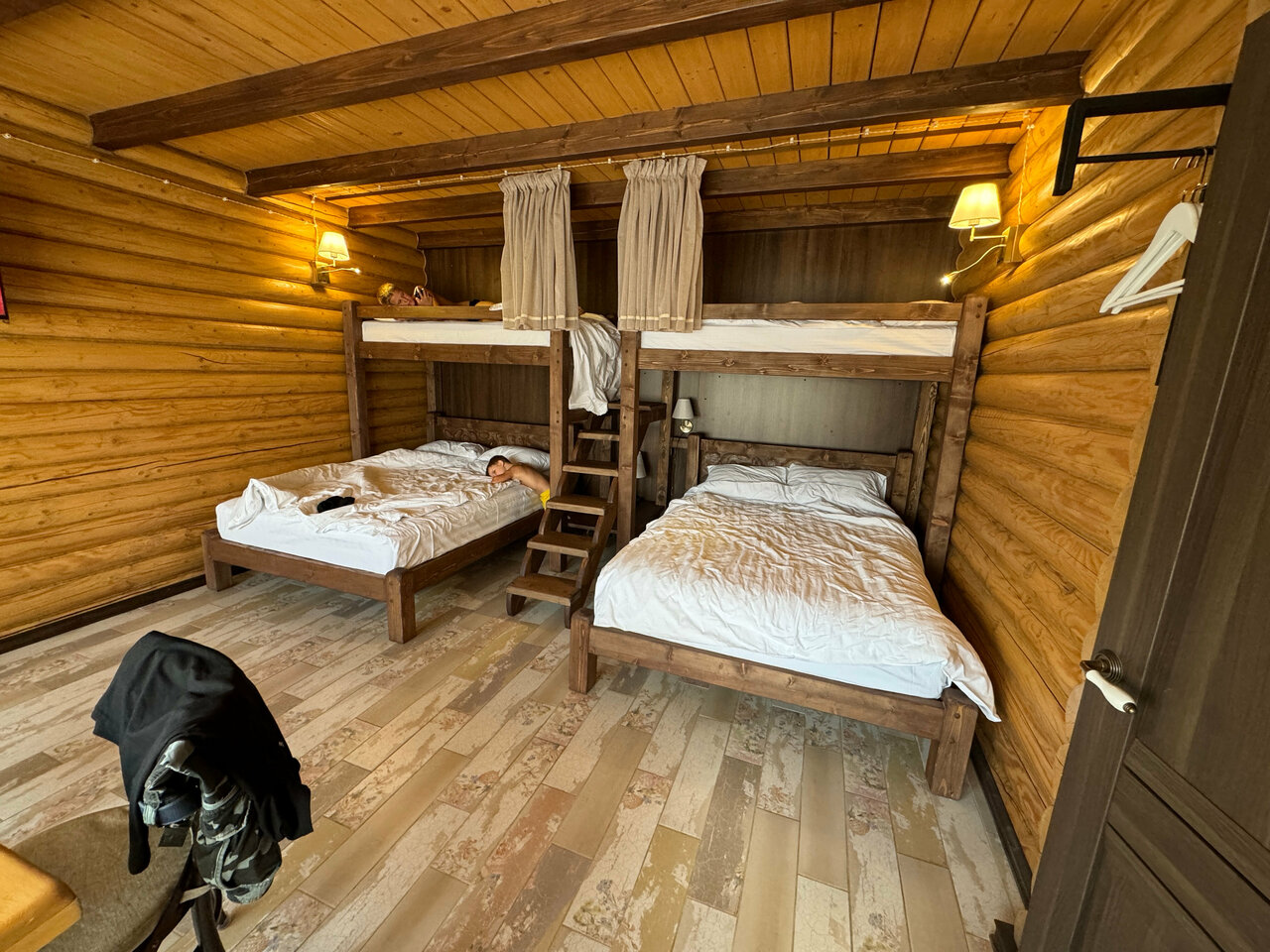 Очень клёвое место. Номер большой. Сказали на 4, но реально 2 двуспальные кровати и 2 односпальные. Все чисто. Еда вкусная, принести прям в номер