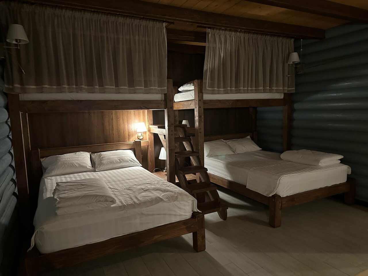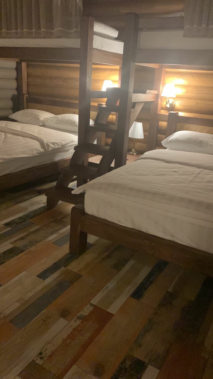 Таких отелей можно посчитать по пальцам. Все чисто, интерьер(мы брали номер на 6 человек) очень интересный. Две большие двухспальные кровати над ними две две односпальные вторым ярусом. В номере тепло даже жарко. Территория небольшая огороженая, стоянка отдельно и не далеко от номера. Завтрак приносят в номер, скинули заказ в ват сап через 20 минут все принесли. Все свежее и вкусно(отдельное спасибо повару). Пять однозначно.