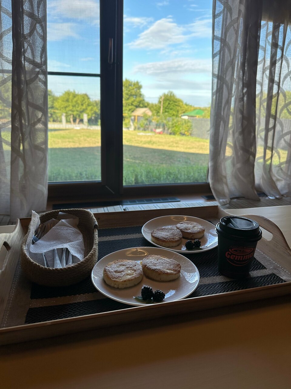 Какие уютные домики и как вкусно в них пахнет очень хорошее место , видно новое , встретили , накормили , завтрак и ужин красиво подали , вкусно Домик чистый , пастель , подушки все хорошее как и ремонт , современный и со вкусом . Спасибо за гостеприимство , обязательно проездом остановимся у вас