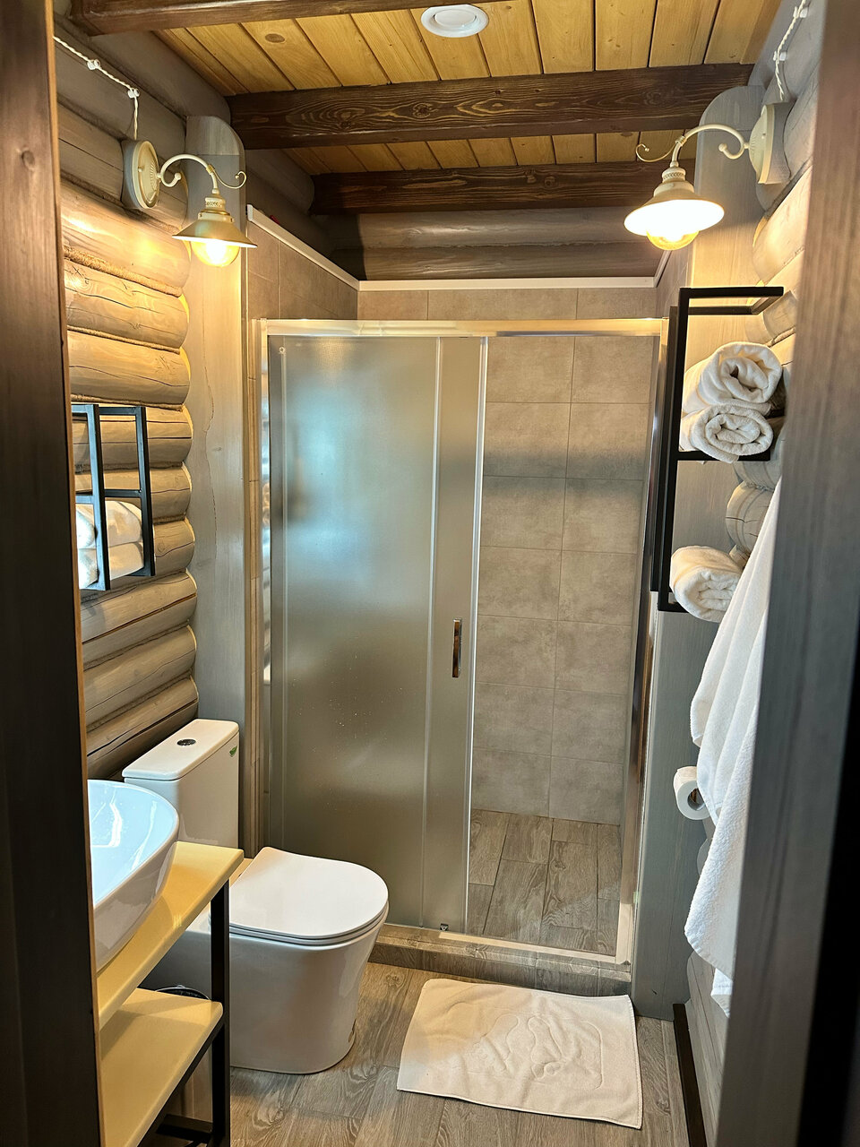 Чисто и стильно. Постельное белье и полотенца заслуживают отдельного внимания. Чистые и белоснежные. В самом домике все продумано для удобства гостей. При желании можно за доп плату заказать ужин или завтрак.