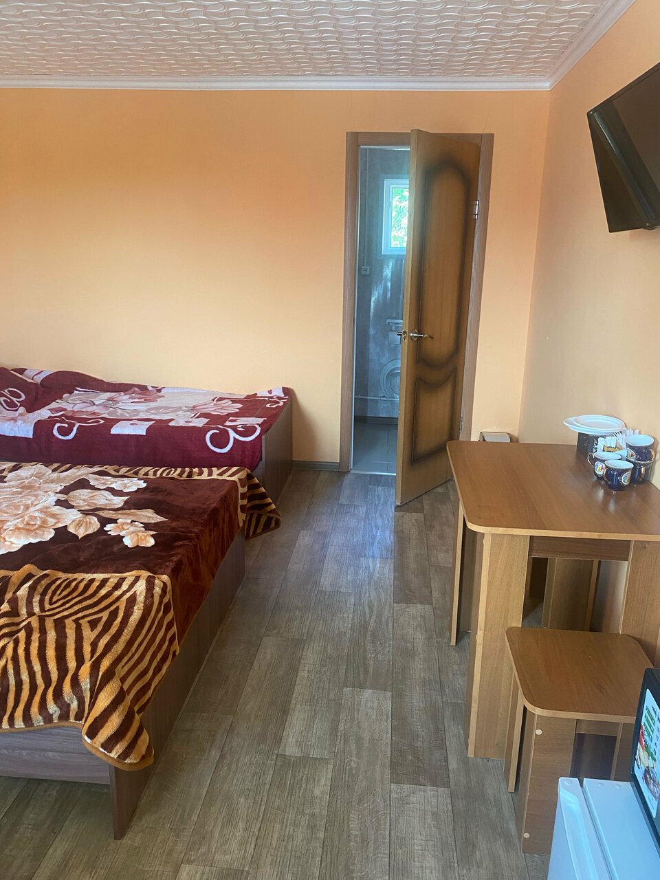 Останавливались уже во второй раз по дороге на юг, в комнате одна двуспалка и 2 полуторки, разместились с женой и 4 детьми!!! В комнате всё есть.
