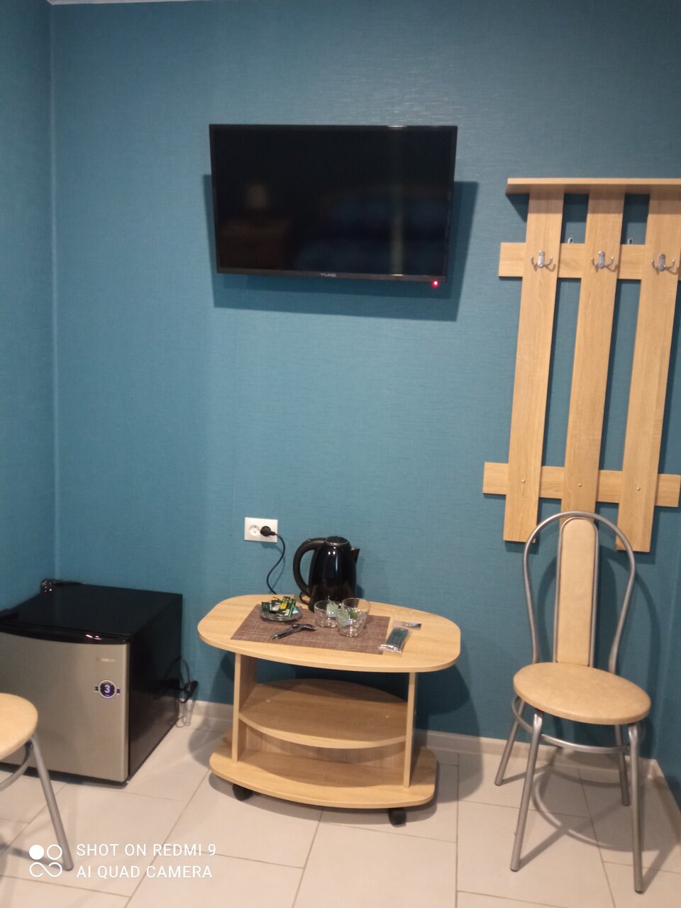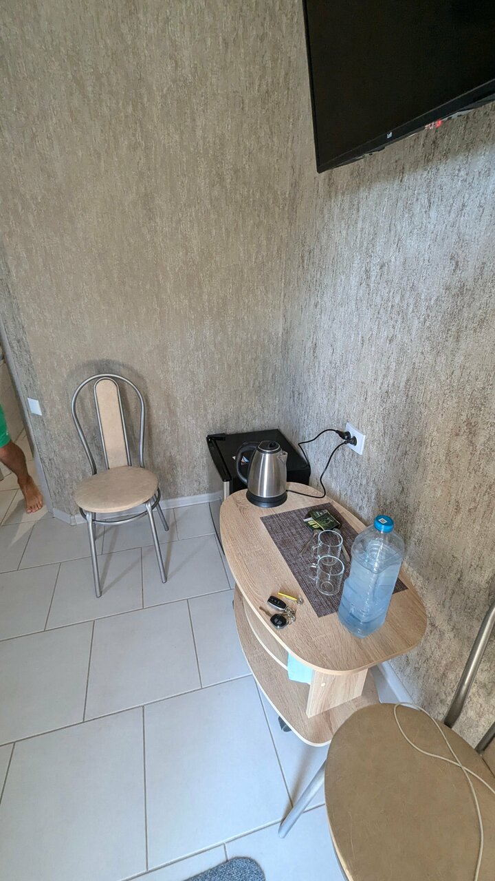 Оставались на ночь, нам всё понравилось — чисто, уютно, есть фен, чайник, чай, кофе, холодильник, кондиционер, телевизор. Цена приятная