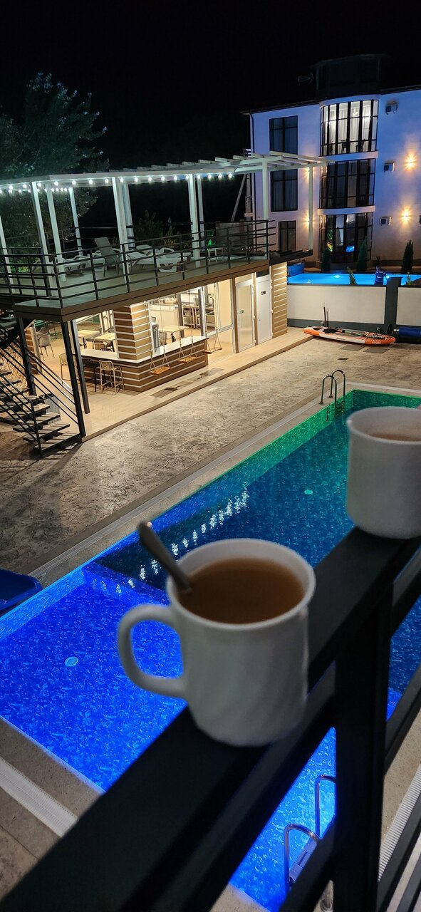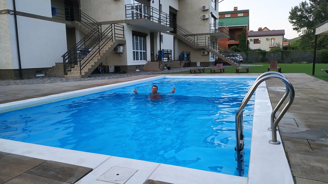 Территория, инфраструктура, номера, природа — прекрасно! Но два бассейна без подогрева — это самый большой минус гостевого дома. Ну очень бодрящая вода, а так хотелось бы им пользоваться. Гости ходят, пробуют, но не купаются (20-е числа августа).