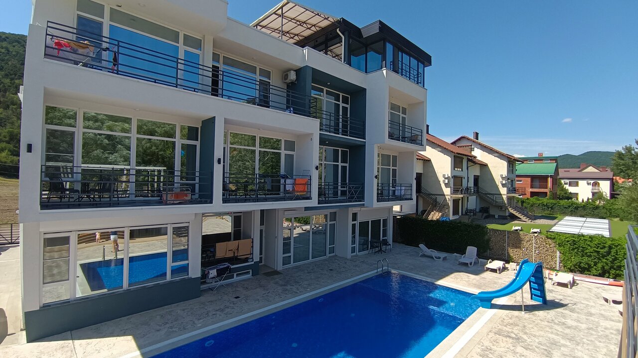 Отлично провели четыре дня в этом отеле. Панорамный вид из номера на горы, удобства в номере, кухня со всем необходимым, зелёная зона барбекю у реки, чистый бассейн с подсветкой и не ограниченным временем… Отдых удался! Море чистое,пляж комфортный с прекрасными кафешками на берегу! От отеля Дюссолей ровно 7 минут! Спасибо персоналу и администратору Наташе! Приедем ещё.