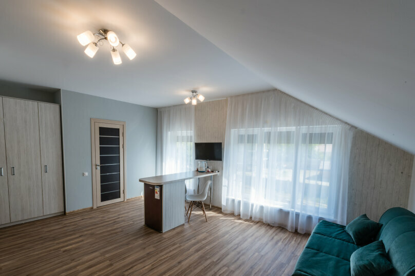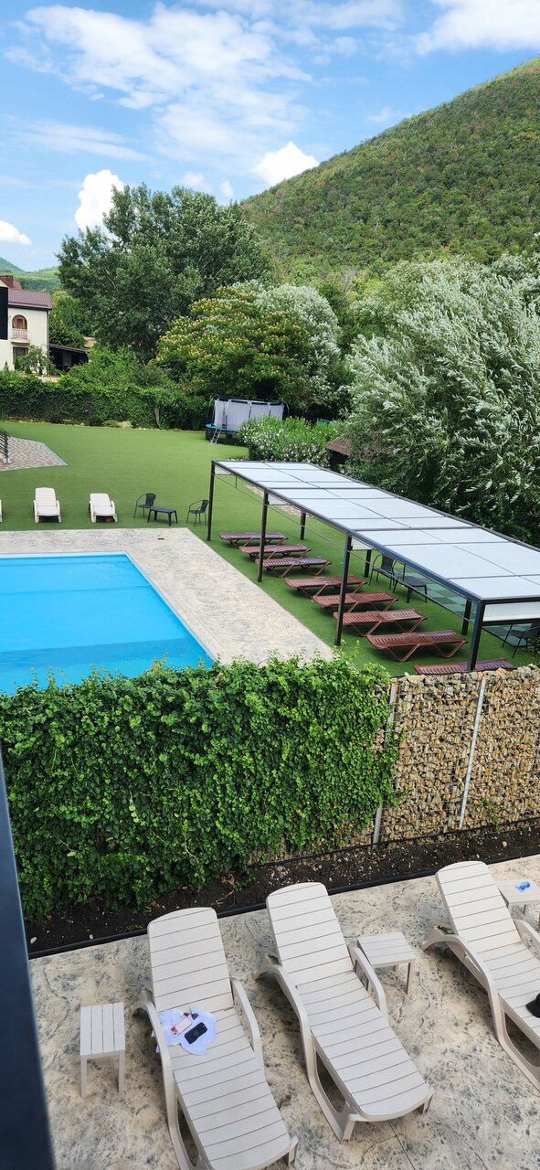 Чисто, уютно, тихо. У нас был 10 номер, на первом этаже, с отдельным входом и при этом отдален от общего двора отеля, именно то, что нам нужно было! Стоянка автомобиля была на территории отеля, рядом с номером, очень удобно. Кухня рядом, в цокольном этаже, чистая, обустроенная, с посудой и техникой. Уборка в номере плановая раз в неделю, нам хватало, полотенца менялись на 4 день. Бассейн чистый, территория ухоженная, есть место для барбекю и посиделок на воздухе.