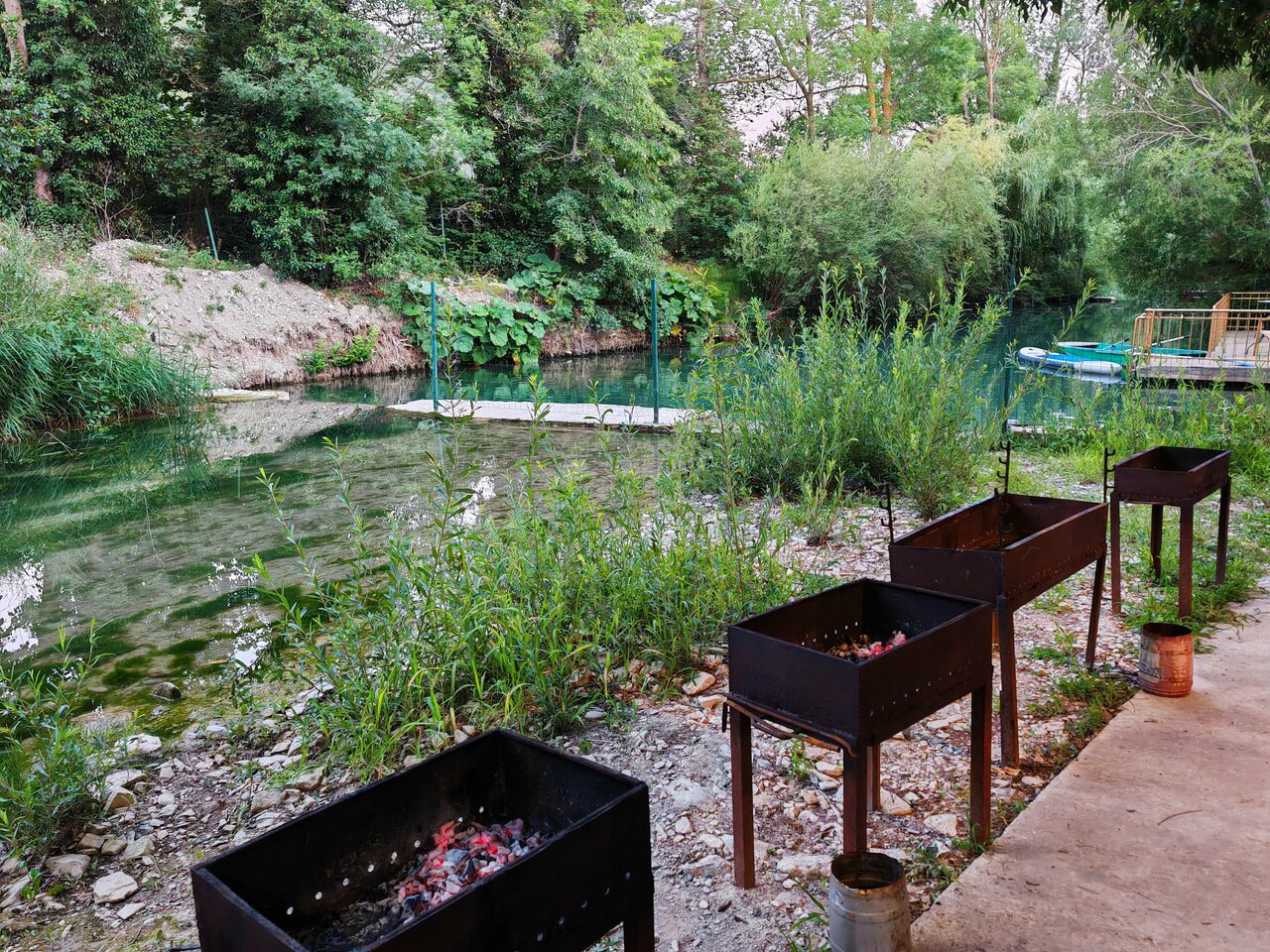 - Большая зона барбекю у реки.