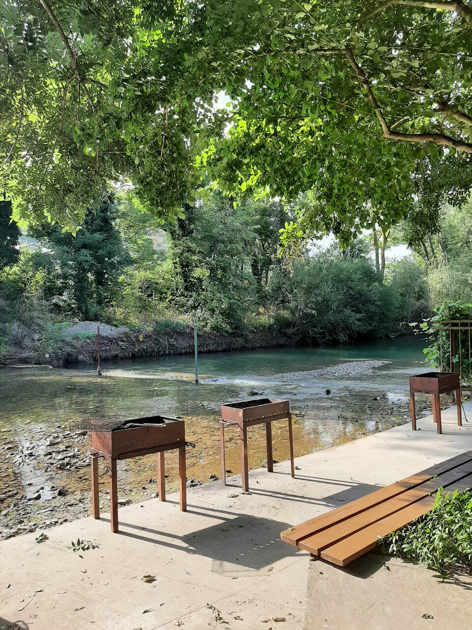 - Большая зона барбекю у реки.; Чистое постельное бельё.; Зелёный двор, красивые растения.; Тихий и спокойный отдых.; До моря 10–15 минут пешком.