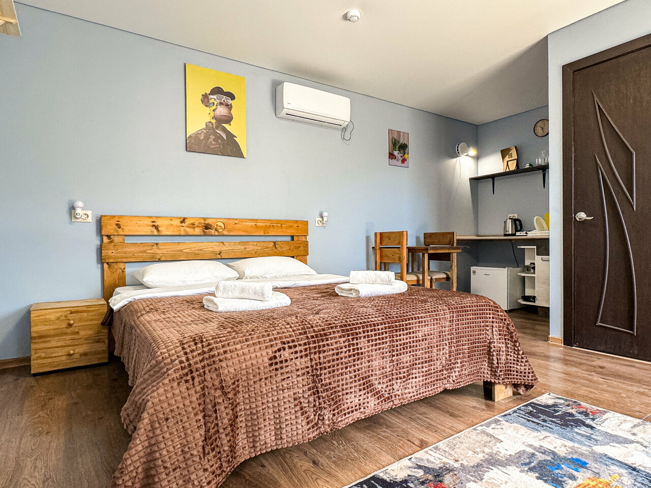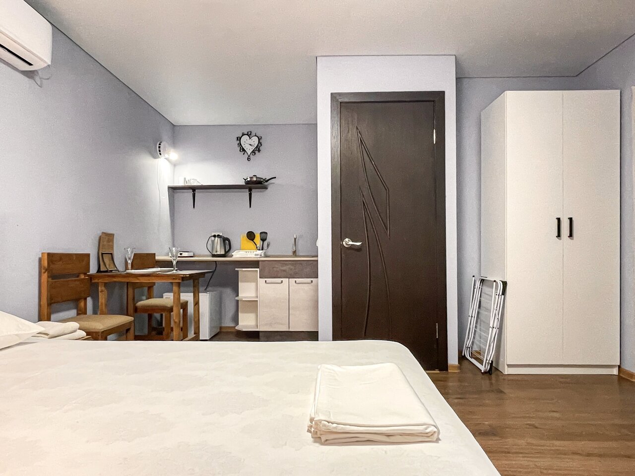 Очень приятное местечко, чисто, аккуратно, все новенькое и красивое. Матрац на кровати мягкий и комфортный. Кондиционер работает отлично, вода без перебоев горячая/холодная. Унитаз смывает и нет запахов. Телевизор не все каналы показывает, но карусель работала отлично. Без доплат поставили допместо для дочери. Машину загнали на парковку. Хозяева адекватные молодые люди. Хорошие полотенца и классная кухонька, без проблем готовили себе завтраки. Вечерами можно посидеть на улице, есть большие зонты от непогоды, качели, шезлонги, столики. На крыше пусто, второй этаж строится. Всего по соседству 7 номеров. Около входа в номер,стоит сушилка для пляжных вещей и полотенец. Спасибо за отдых!