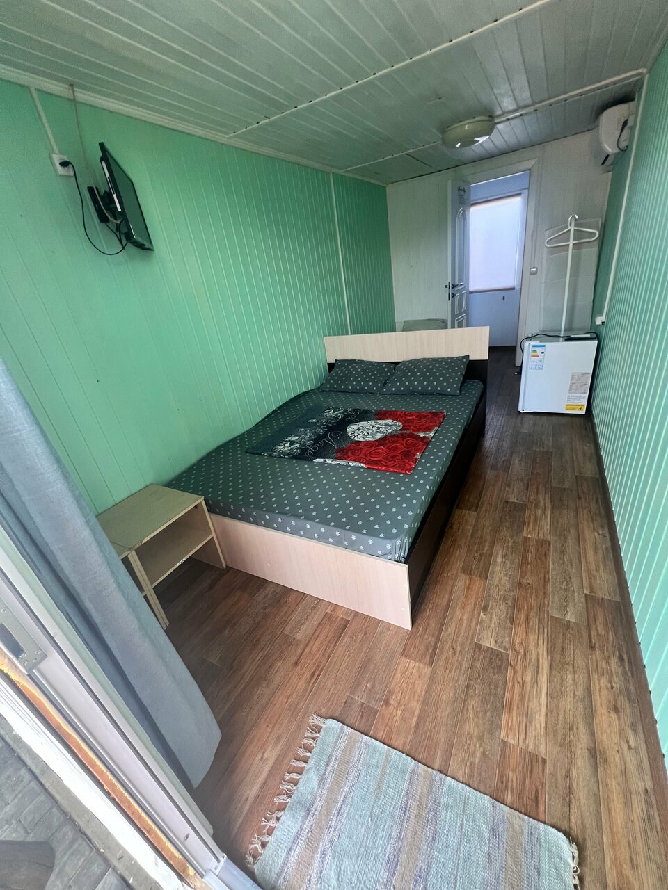 Гостевой дом в принципе не дом. Напоминает кубриковое общежитие. Но, есть своя территория, где имеются качели, не большая площадка для прогулок и столики под большим навесом (очень похожи на уличное кафе). Там же кухня и зона для мытья посуды. Два мангала. Территория просторная. Кубрики есть с тремя кроватими и с двумя. Там есть и телевизор и сан узел, и холодильник, вобщем все условия. Администратор добрый и отзывчивый, все проблемные вопросы решает быстро. До моря идти 7-10 минут в разведку.