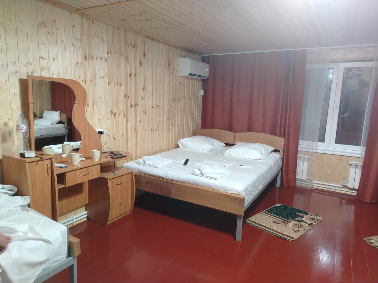 Супер! Находится немного в отделении от трассы, но это даже хорошо, можно выспаться в тишине. Все необходимое есть, новые матрасы , подушки и постельное, чистота и соседей не слышно вообще! Хозяин приветливый, ему отдельное спасибо)