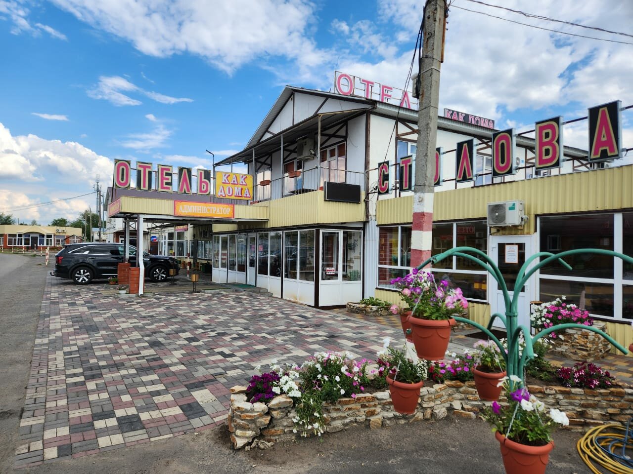 Отвратительное место, мы приехали, уставшие с дороги в 01:30 ночи, нас встретила администратор с таким лицом, что захотелось, сразу уехать оттуда, вела себя не приветливо и грубо, несмотря то что мы забронировали заранее и все подтвердили, запись о броне почему то не было, хорошо оказался свободный номер. В 07:00 нас разбудило, то, что уборщица ходила по коридору, орала по всему коридору, хлопала дверьми всех номеров, не имея понятия видимо, что она работает в круглосуточной гостинице, где люди могут в любое время приехать и лечь спать, и она мешает отдыхать клиентам. Также ‘блеснула’ столовая одноименная, огромные цены, не для придорожной столовой, совершенно не вкусно, все дико соленое, к тому же и обслуживание ужасное, сказали быстро выбирать за 2 минуты, иначе придется ждать 20 мин, хотя они открылись в 06:00 утра. На завтрак никаких блюд нет, только для обеда и ужина. Низкая оценка этим заведениям.