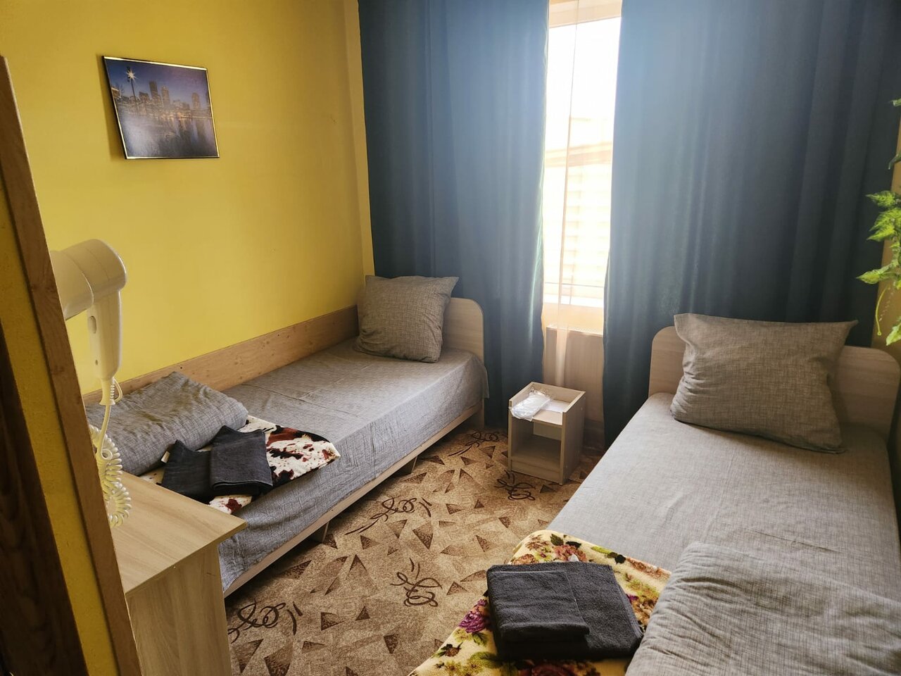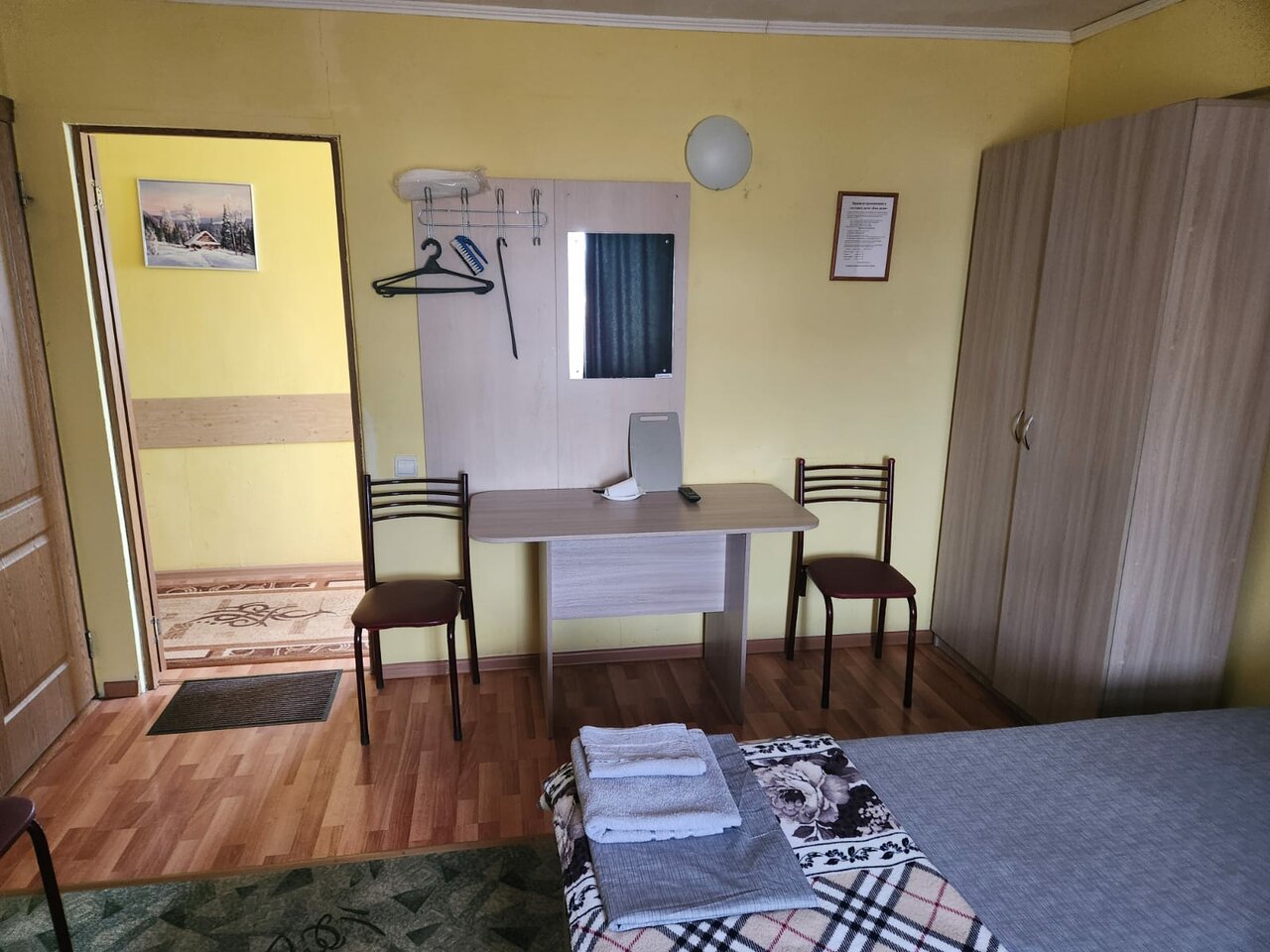 Удобное расположение. Для остановки на одну ночь вполне нормальный отель. У нас был номер из 2 комнат, с одной односпальной и одной двуспальной кроватями, также с удобствами в номере за 2500(категорию, к сожалению, сказать не могу, думаю улучшенный эконом). Постельное белье чистое, есть телевизор в номере. Мы останавливались с семьей, когда на улице было -15, в номере было прохладно. Над нами (на втором этаже отеля жильцы грелись сплитом, в нашем номере его не было)! В коридоре в общем доступе стоит кулер с чайником. Стены тонкие, все слышно!! Хором из золота не ждали, вполне довольны ночевкой, только пришлось утеплиться!