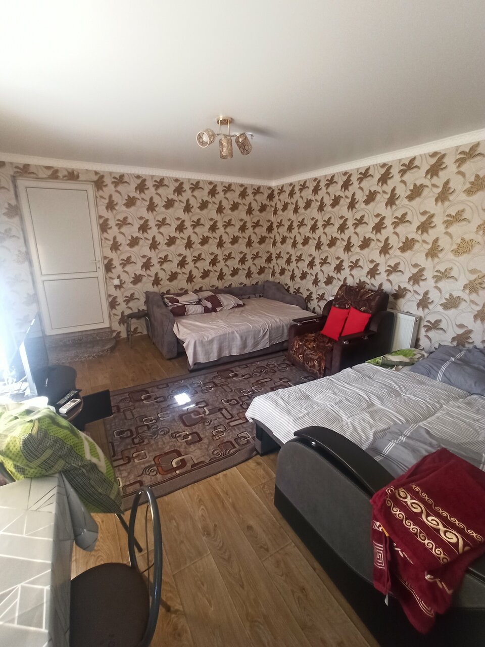 Очень удобно для остановки по возвращении с моря. Отличная большая комната во флигеле с двумя большими диванами, душ и туалет, чайник, микроволновка, телевизор, кондиционер, фен и различные средства гигиены — всё есть. Приятные хозяева — Олеся и её семья, спасибо им!