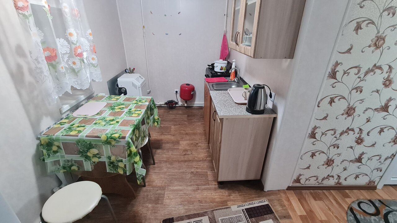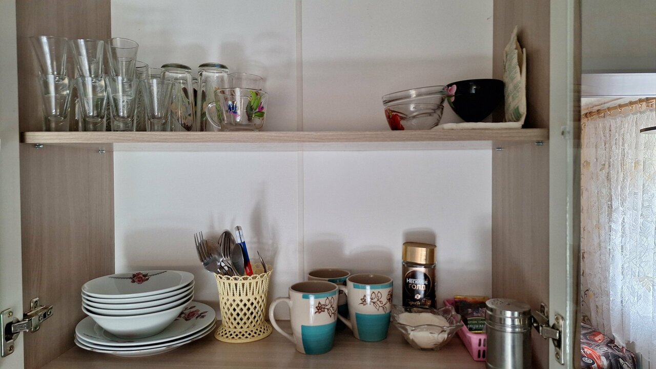 - Хорошая кухонная зона (плита, микроволновка, посуда).