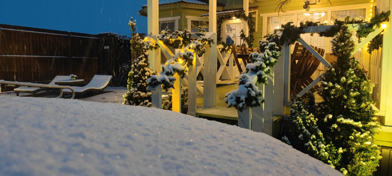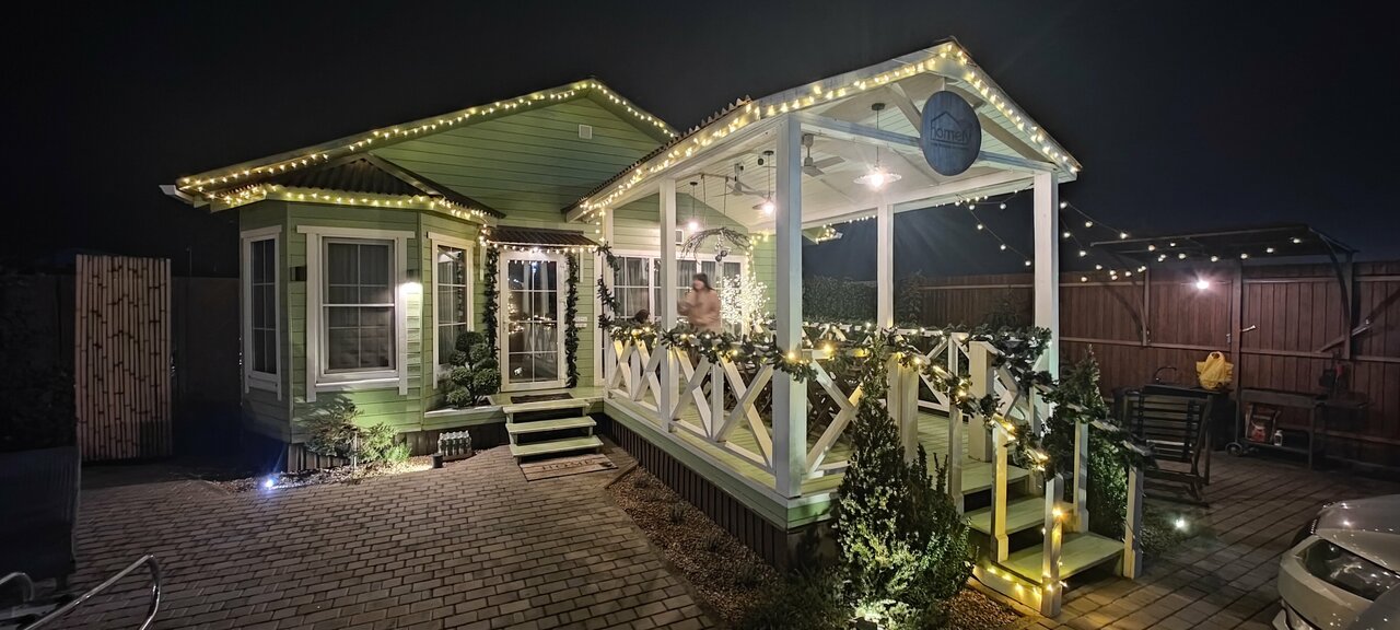 Классный и уютный домик отмечали там день рождение моей подруги и гендерпати было у нас, в бассейне к сожалению не искупались потому что было холодно и дождь, но в бассейне подогрев, мы просто сами побоялась Сняла звезду, за то что далеко очень находятся и дорога туда не особо хорошая, а так в целом оооооочень уютно, компактно и хорошо Был у нас внутри раптор гель, так он отпугивал всех Комаров и в доме они нас не кусали, но на улице бы съелив общем классно
