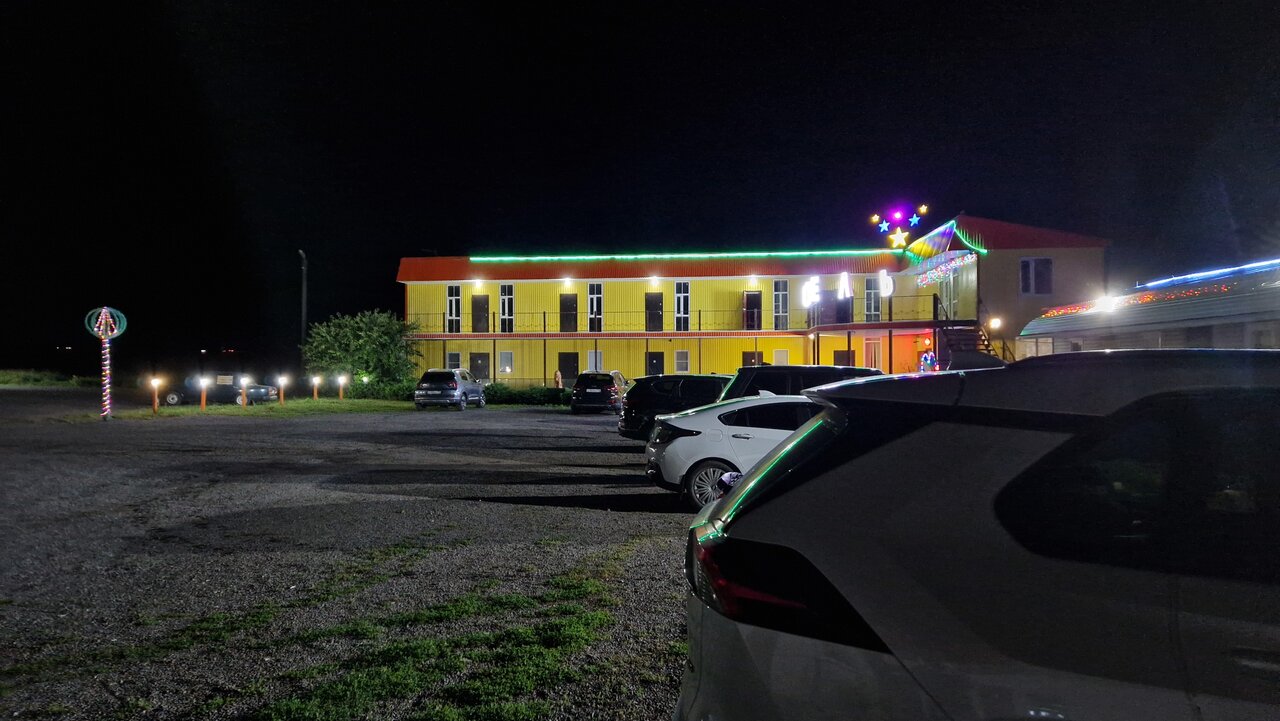 Стены из картона, соседей прекрасно слышно, в номере запах дешёвого пластика, которым обшит потолок, пружины матраса торчат, кондиционер прямо над кроватью. Выспаться не получилось. Цена за номер сильно завышена, оплата только наличными. Хотите восстановить силы в дороге — выбирайте другое место. Две звезды за охраняемую стоянку и за то, что удалось оплатить переводом на карту.