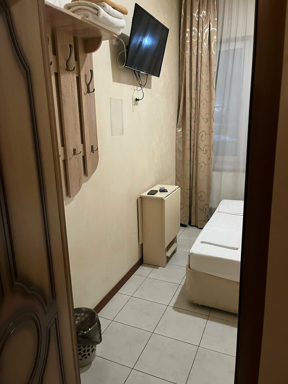 Я в шоке от оценок. Возможно все кто ставит высокие оценки этому отелю привыкли к клоповникам. Отель держит семейный подряд + работают молодые девочки. Обслуживания нет. К сожалению выбирать не пришлось ибо ехали с тур-оператором. Заселились вечером, выселились 8:40 утра. Взяли как за стуки 3000р, вкл завтрак: 2 сырника и ужасный чай. Номер был относительно чистый, но не постельное белье. Вместо одеяла положили какие-то махровые полотенца. Впечатление не самое лучшее.