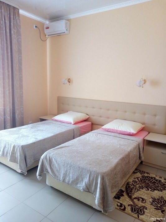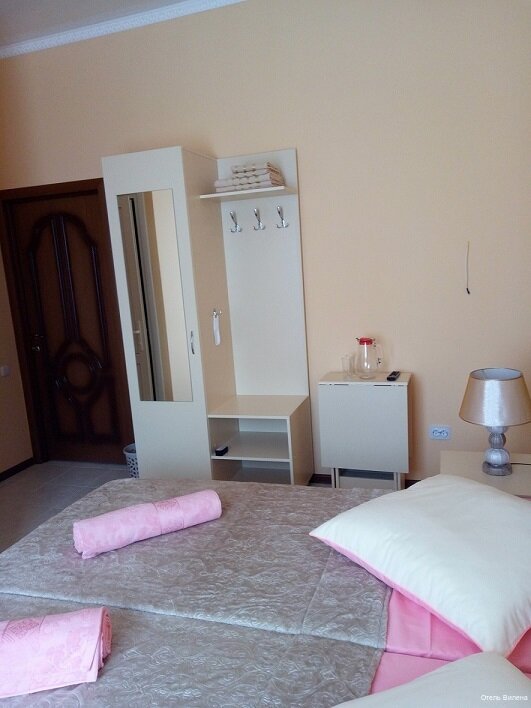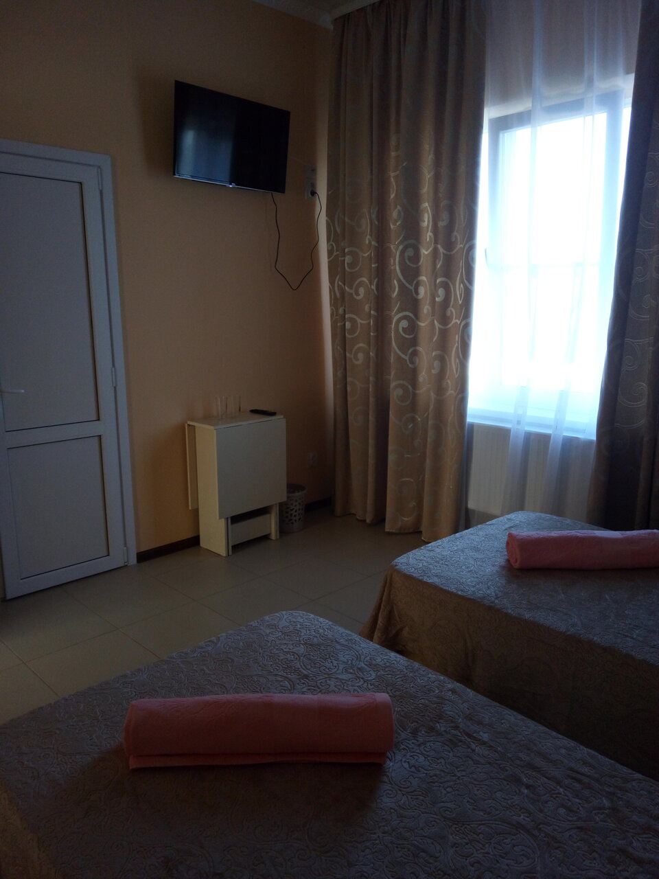 Были проездом из Крыма. Ночевали в семейном номере, в отдельном домике. Все понравилось, номер чистый, двуспальная кровать, двуспальный раскладной диван и 2 раскладных кресла. Полотенец было на 2 человека. Одеяла были в виде огромных полотенец, не очень удобно и их было всего 3 шт. Рядом дешевое кафе с вкусными блюдами. Для ночевки на одну ночь все супер за такую доступную цену.