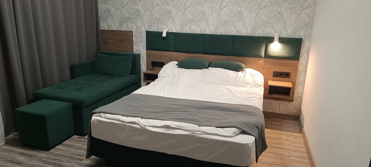 Отдыхали в этом отеле по дороге из Крыма в СПб. Все понравилось. Расположение от трассы очень удобное: всего 1 км в сторону, рядом магазины (магнит и пятерочка). Оборудование все новое. Хозяева очень гостеприимные.