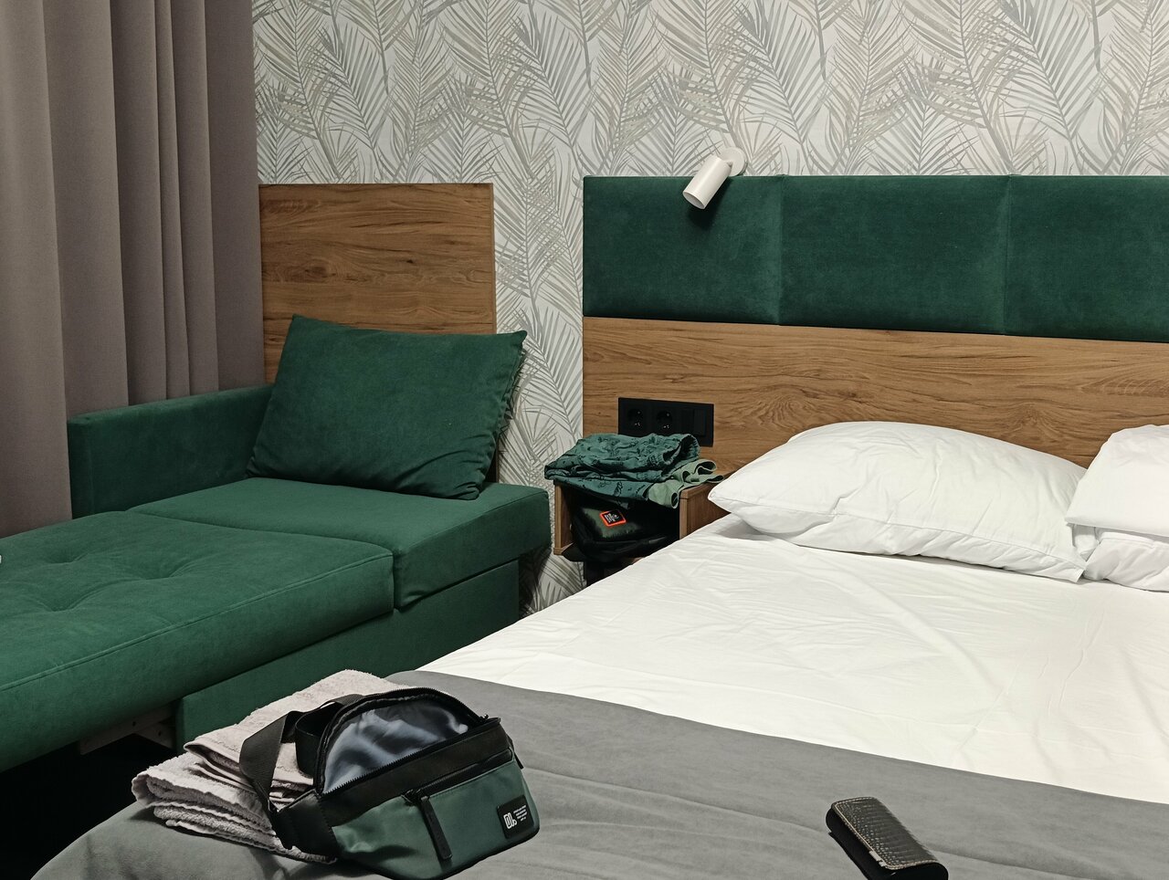 Останавливались семьей с двумя детьми на ночевку по дороге на море и обратно. Идеальный вариант для этого. Действительно тихо, все новое, в номере — кондиционер, сетки на окнах, полотенца, в общей кухне — кулер, чайник, чай, кофе, кашки.