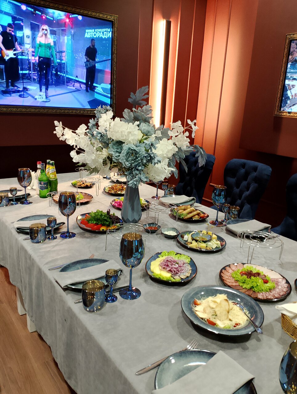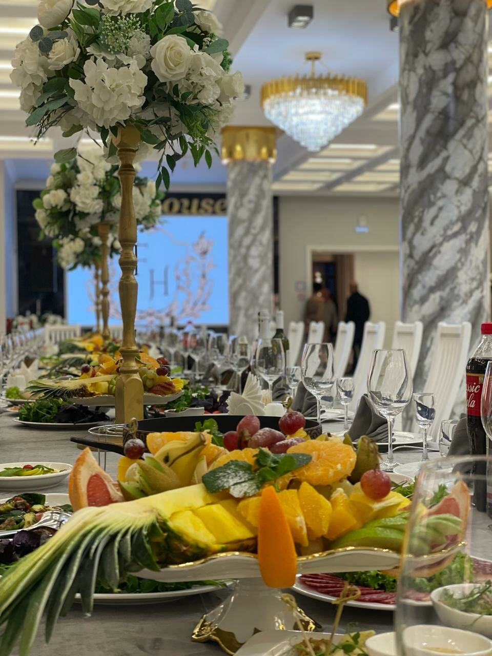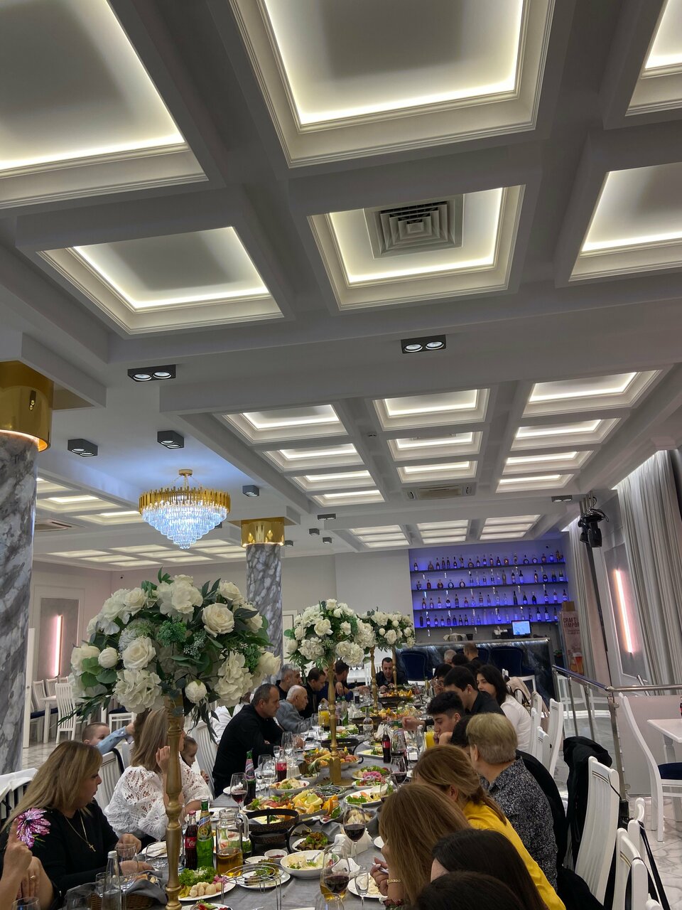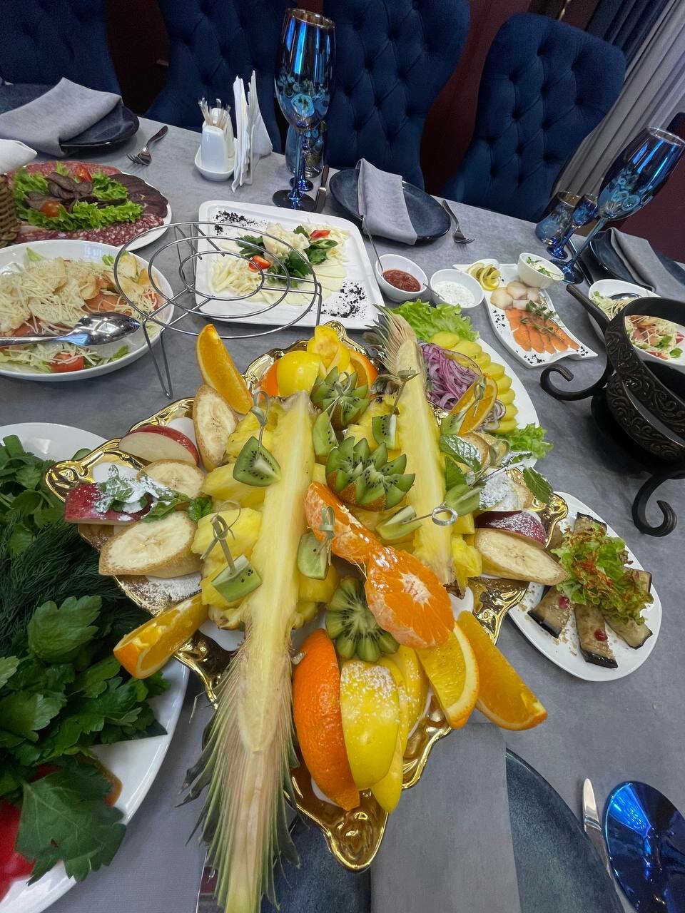 Отмечали новогодний корпоратив, было несколько организаций, столы накрыты хорошо у всех одинаково, по армянски широко и хлебосольно! Кухня очень приличная — продукты свежие, вкусно! Отличные официанты — молодые ребята — бесшумные и услужливые. Единственный минус — не хватило к концу вечера льда, просьба на такие мероприятия готовьте его побольше! Хорошая программа, разнообразная, было весело всем, приглашенные кабаре и фокусник также очень порадовали! Ресторан новый, приятно в нем находиться, хороший интерьер, тематическое оформление к новому году! Нам понравилось! Прийдем ли еще? Думаю да!
