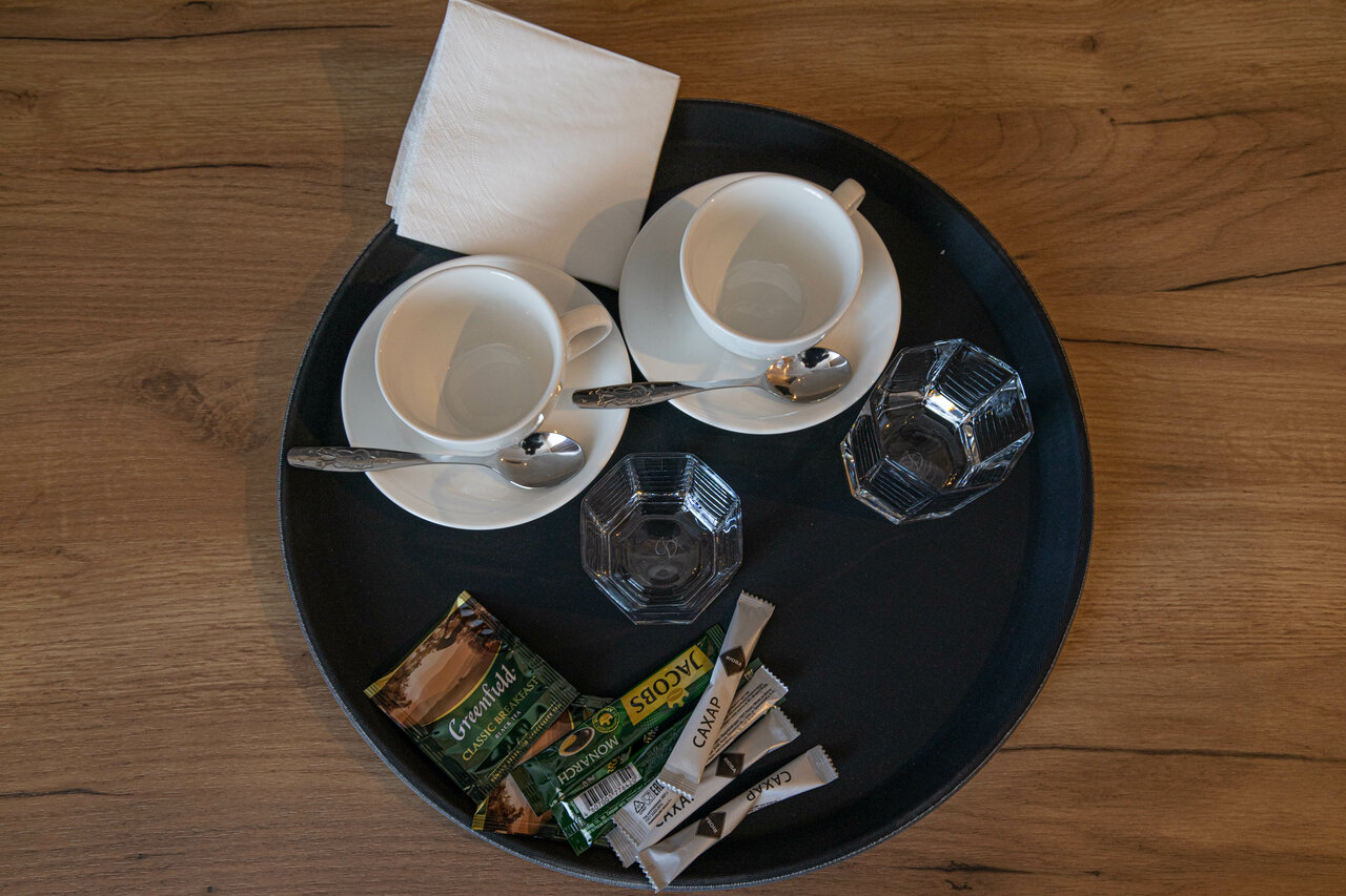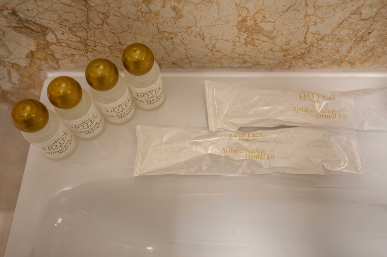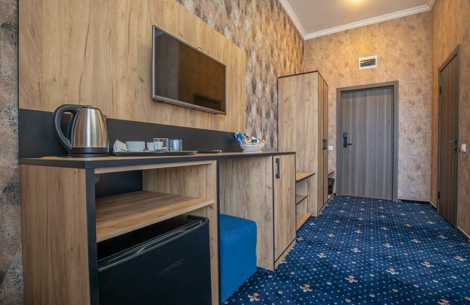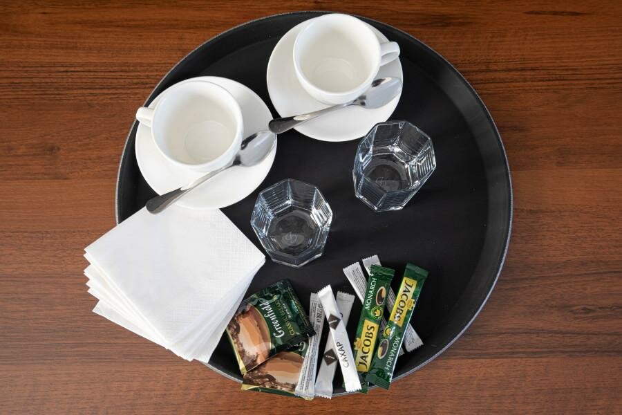 - Бесплатный чай, наличие гигиенических принадлежностей (фен, щетки, гели, тапочки).