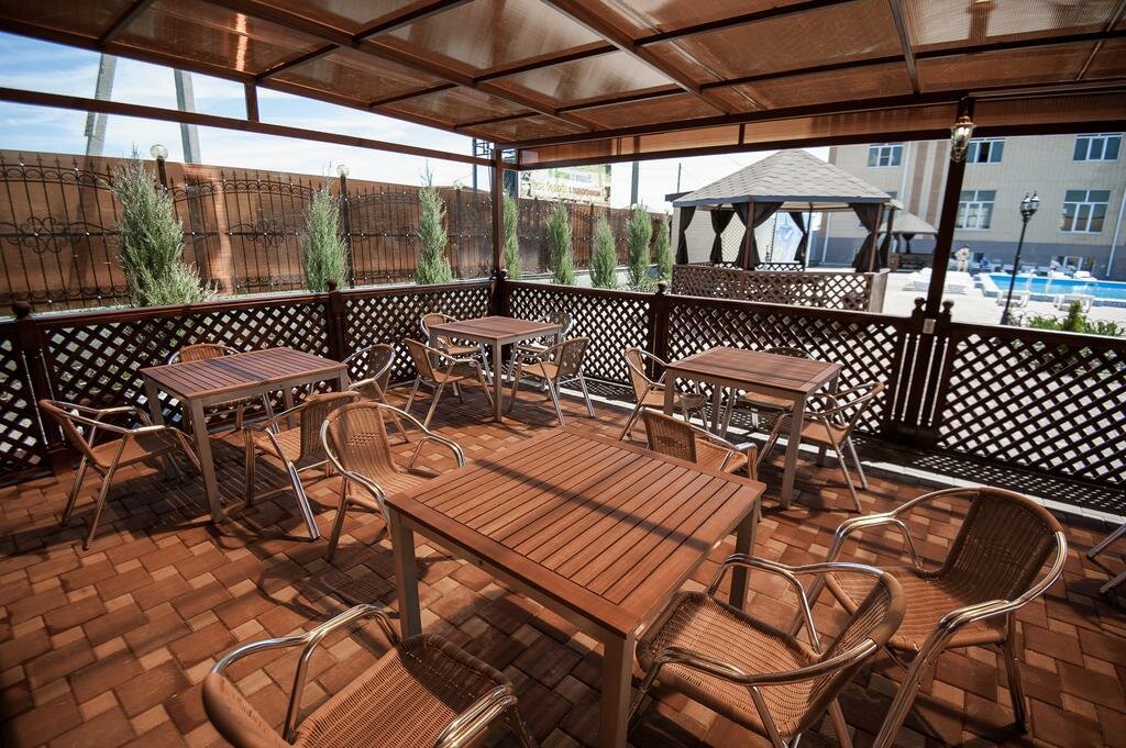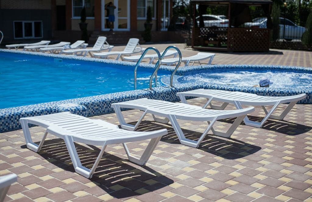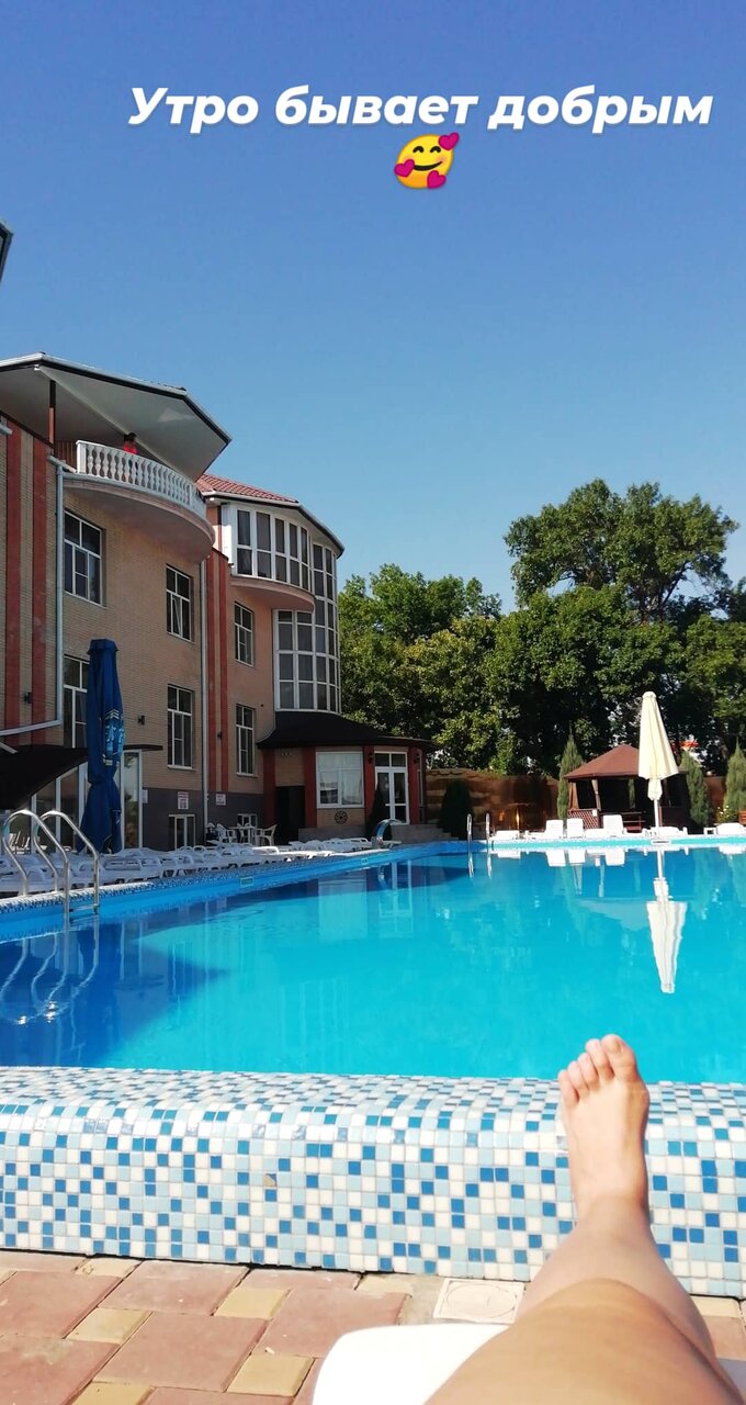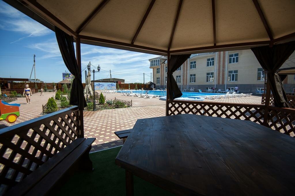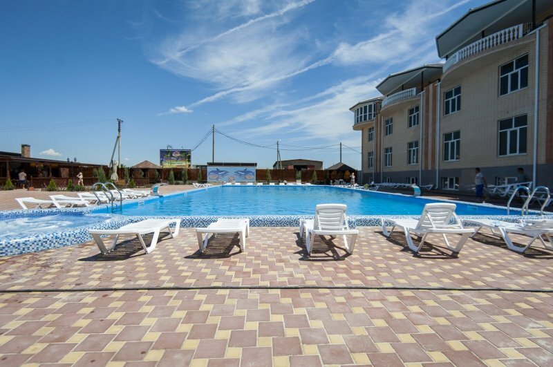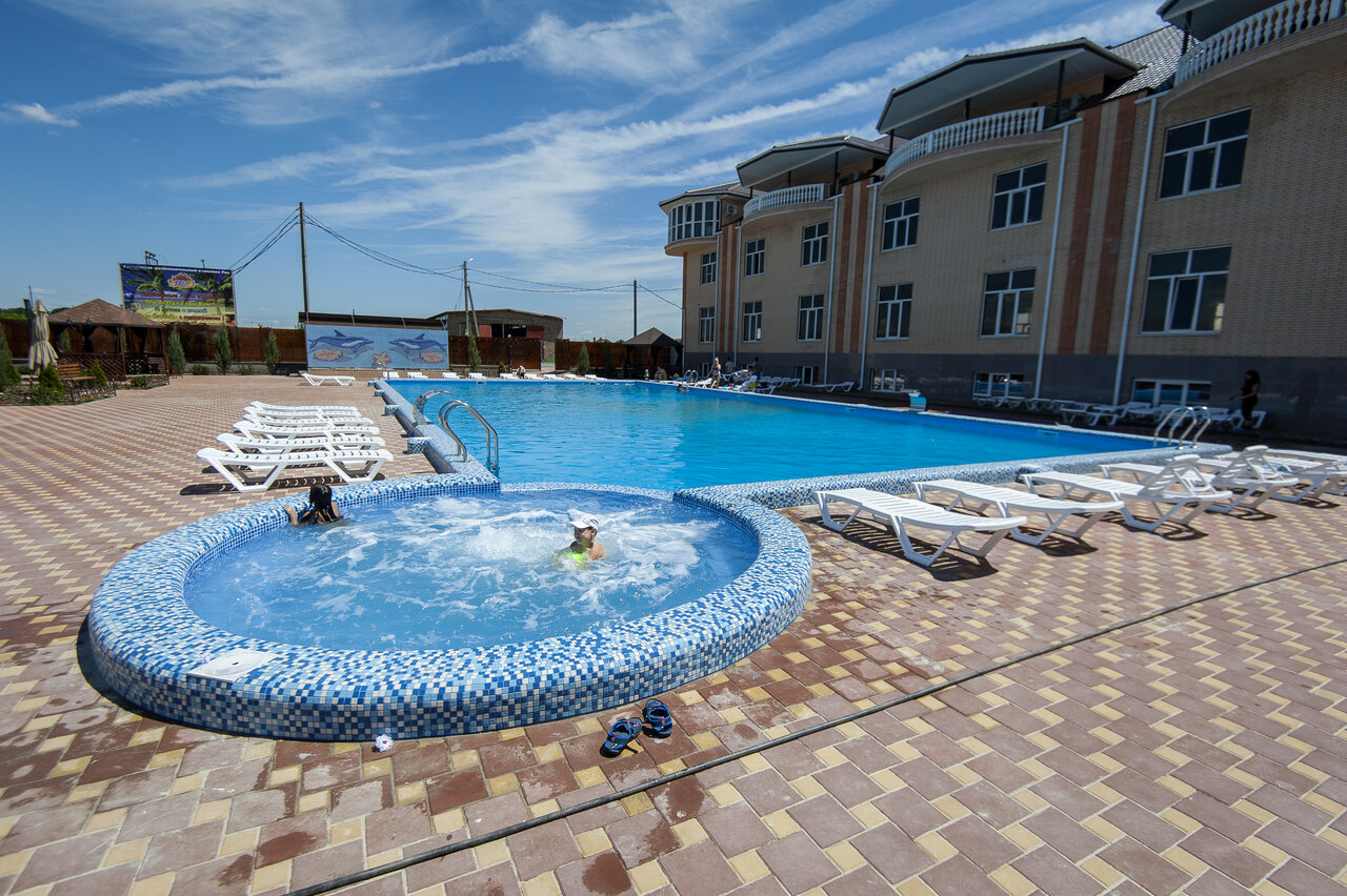 Большой бассейн с разной глубиной, но грязноват. Лежаки расставлены очень близко друг к другу. Кафе нормальное — шашлык, салатики, закуски, пиво. Вечером в будни и в выходные очень много людей. Отель неплохой, в номере чисто. Завтрак такой, что можно считать его нет.