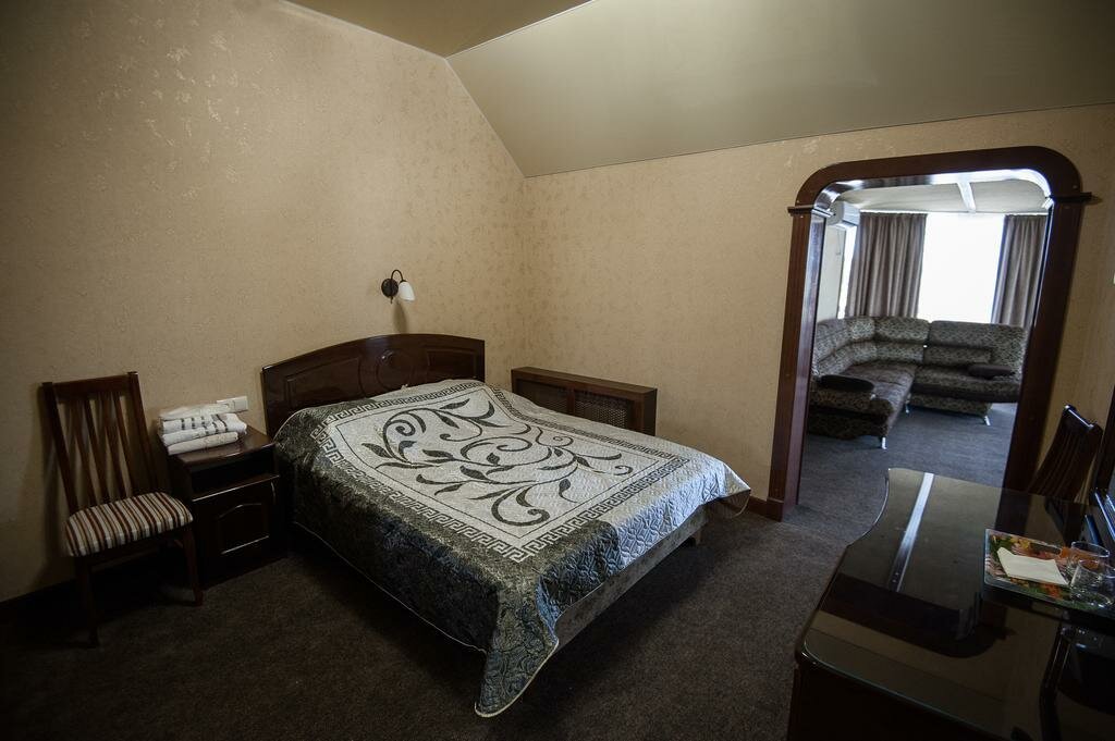 Номер семейный. Большая двух спальная кровать плюс диван.Номер состоит из двух комнат. Включен завтрак на 2х