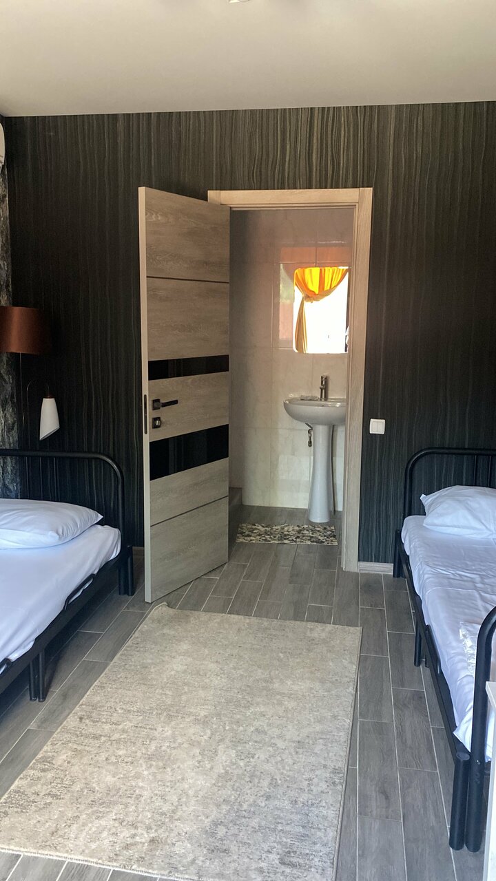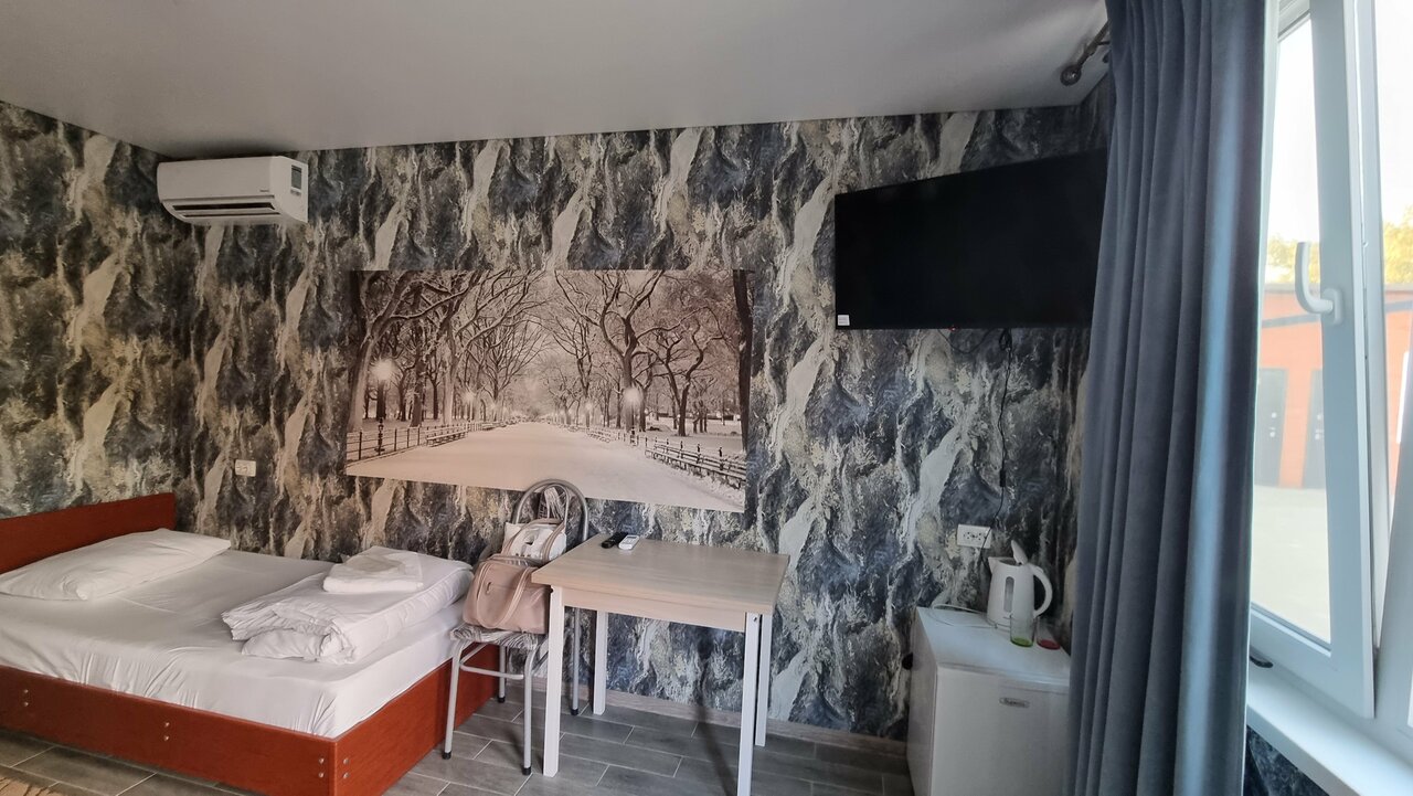 Тихое место недалеко от трассы. Уютная закрытая территория с парковкой и зонами отдыха. Комнаты в одноэтажном доме, у нас был с собственным санузлом. В комнате есть все необходимое для отдыха, кровати удобные, матрасы мягкие, в душевой — полотенца и набор для душа. Есть холодильник, чайник и минимальный набор посуды для чая. На окне москитная сетка. Рекомендую для отдыха в долгой дороге