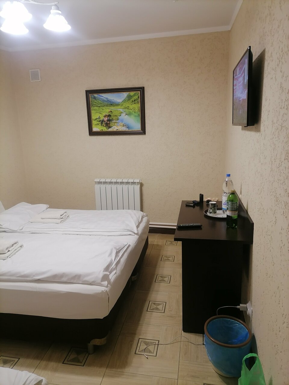Чисто , удобное расположение, приятный персонал, есть кондиционер, наличие круглосуточного кафе рядом, все понравилось. Мы не один раз там останавливаемся. Номер на 4 не большой но вполне достойный. Парковка имеется