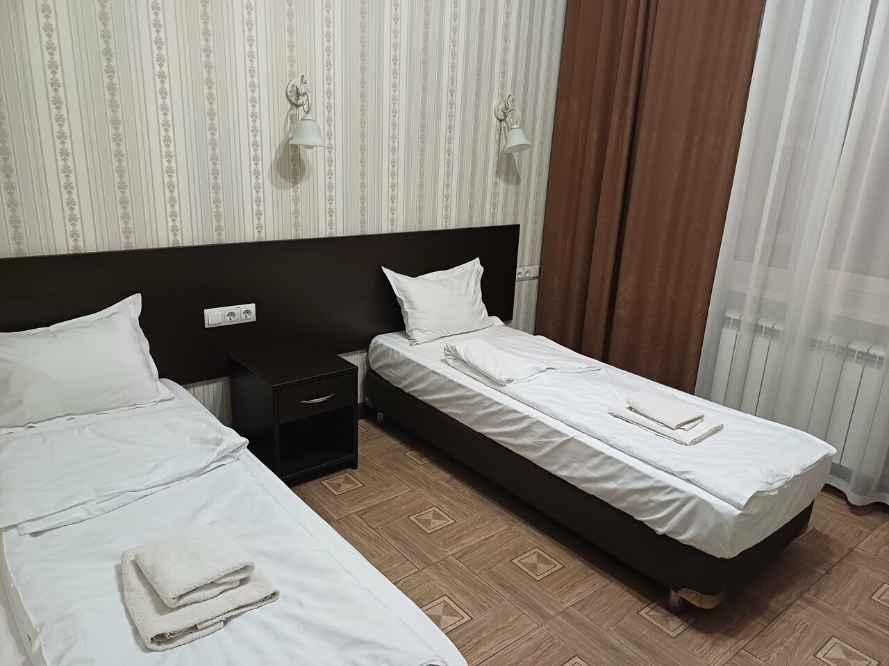 Гостиница категории 2 звезды предлагает комфортные номера с кондиционером, холодильником, телевизором, бесплатным Wi-Fi и санузлом. Доступны гипоаллергенные номера и номера для некурящих. В стоимость проживания (от 3000 до 4500 ₽/ночь) входят тапочки, фен, утюг и ежедневная уборка.