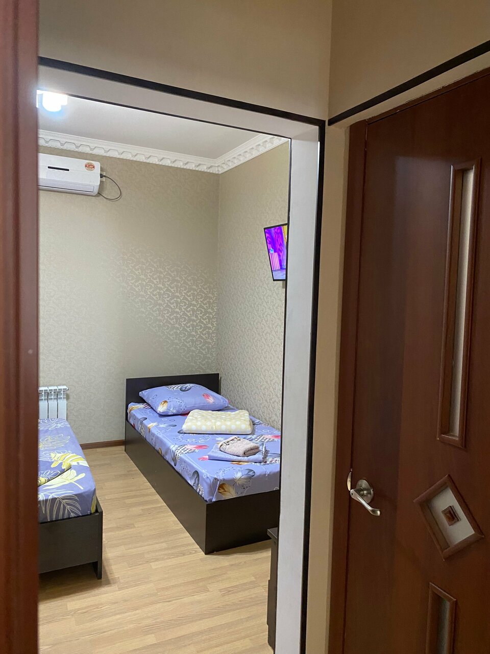 Для ночлега все, что нужно. Парковка душ кровать телевизор кондиционер, три односпальные кровати. Не хватало столика и вешалки и крючков в душе. Нас ждали, заехали поздно, быстро спать и слова в дорогу. Удобное расположение.