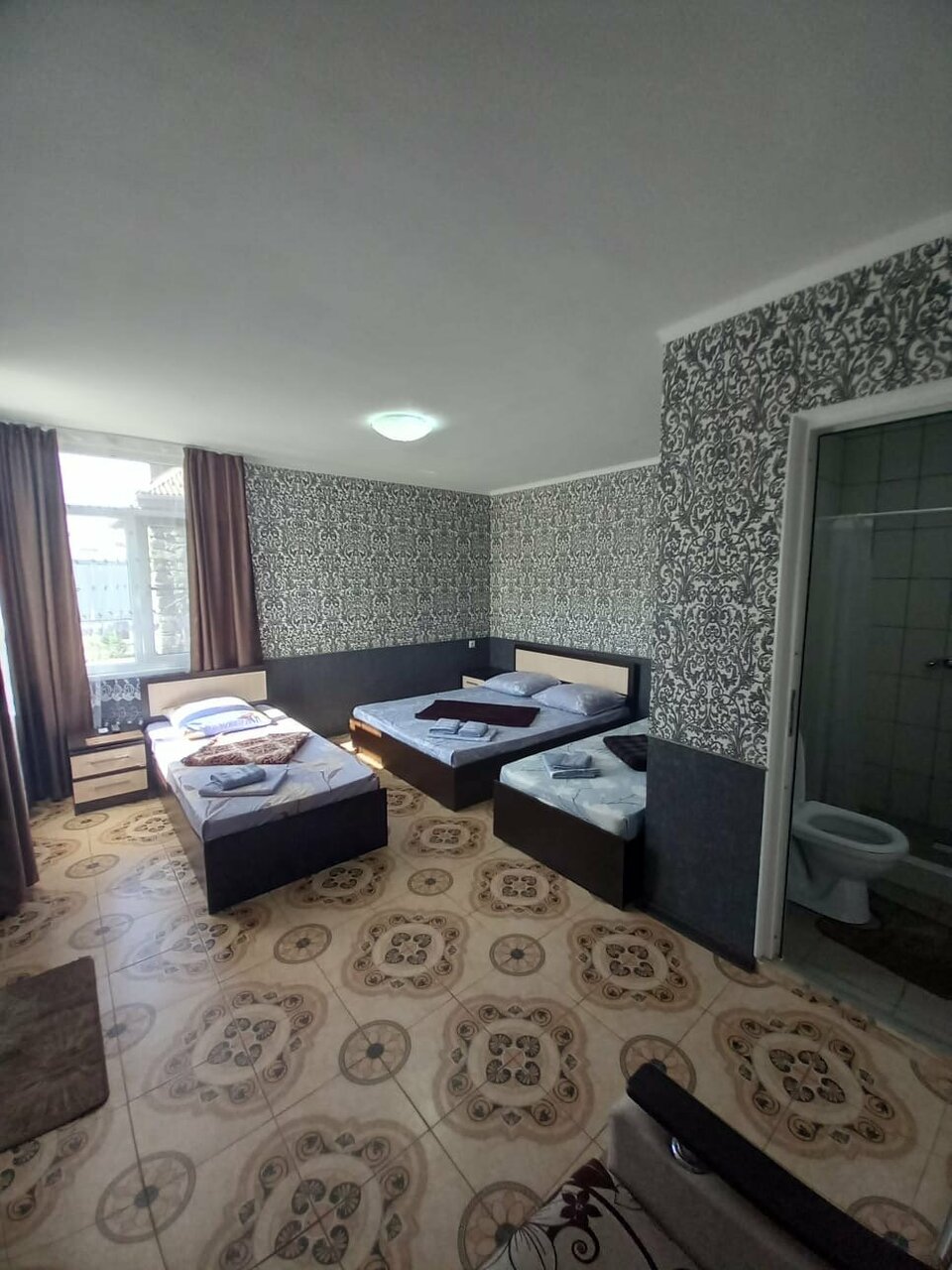 Трёх местный номер за 5000 это слишком.Номер для тех у кого не осталось выбора.Напора воды нет.Полотенца маленькие для душа .Не рекомендую.