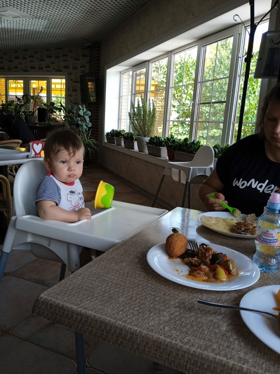 В номерах чисто, есть телевизор, вода, чайник, чай, чашки, стаканы. Кондиционер в номере работал отлично. Так как гостиница находится прямо на трассе шумно в номерах, окна которых выходят на трассу, при закрытых окнах проблем нет. Персонал вежливый, без проблем поменяли номер, так на третьем мансардном этаже почти нет окон и мы переехали на первый. Очень благоустроенный двор , есть детская площадка, большая стоянка для машин. Рядом помещение столовой, где можно недорого покушать, завтрак в оплату не входит. В целом хорошая и чистая гостиница, где очень удобные кровати и просторный санузел.