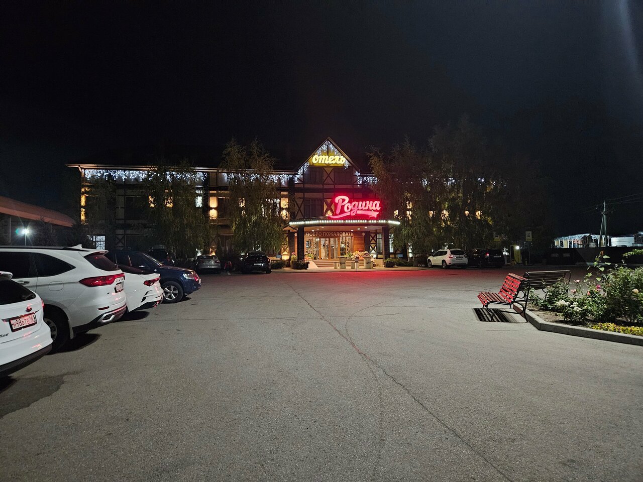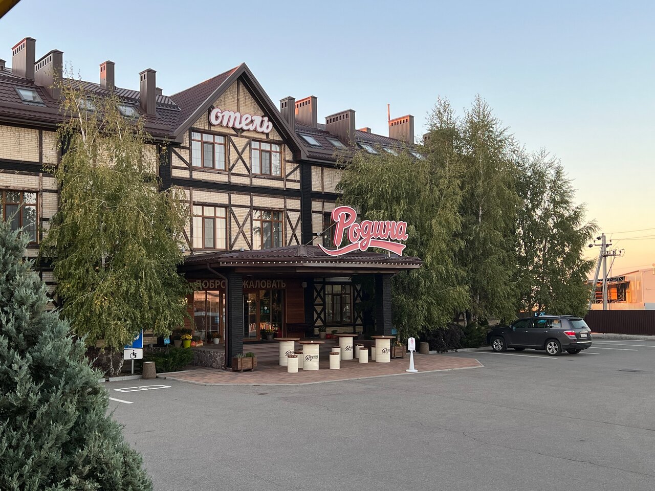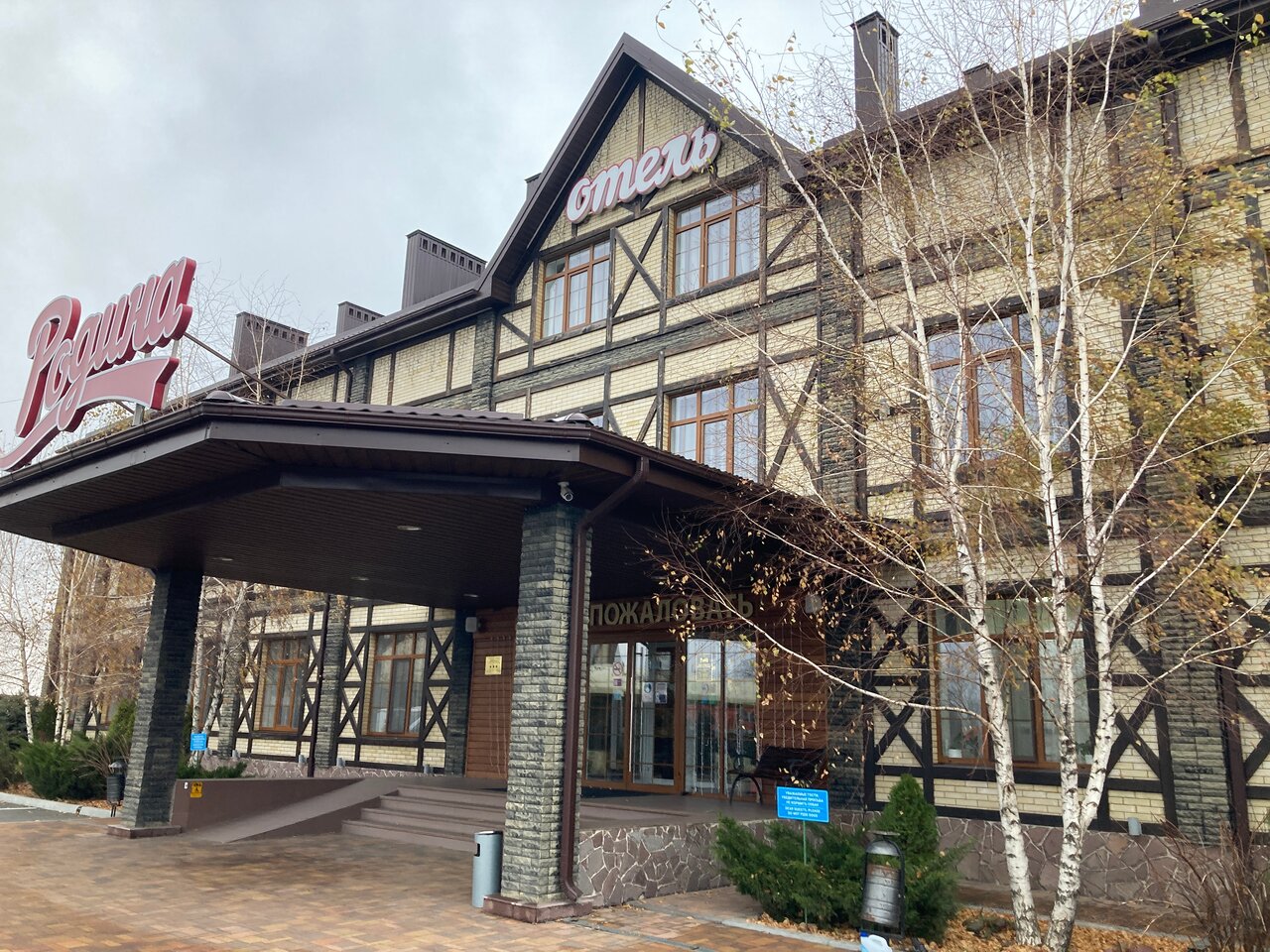 Ночевали в отеле Родина в сентябре 2023 г, ехали по хорошим отзывам. В целом гостиница хорошая, кровати очень удобные . Постельное белье белоснежное. Душевые принадлежности есть. Халаты принесут по просьбе, но внешний вид халатов, скорее для бани чем для гостиниц, ещё и без пояса. Мне бы стыдно было такие халаты давать гостям, тем более стоимость за ночь- 4700р. Снизила на 1балл из за лёгкого, несвежего запаха от ковролина! Ну и в столовой еда оставляет желать лучшего! Очень всё сладкое, и не очень аппетитное. Но на трассе м4 дон, в этом районе думаю лучше гостиницы вы не найдёте! Поэтому рекомендую!