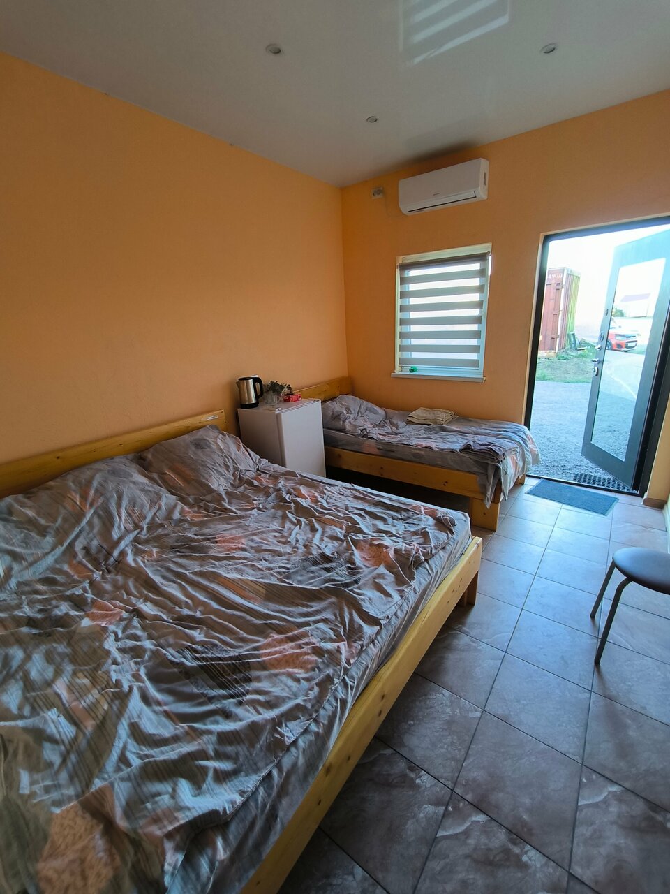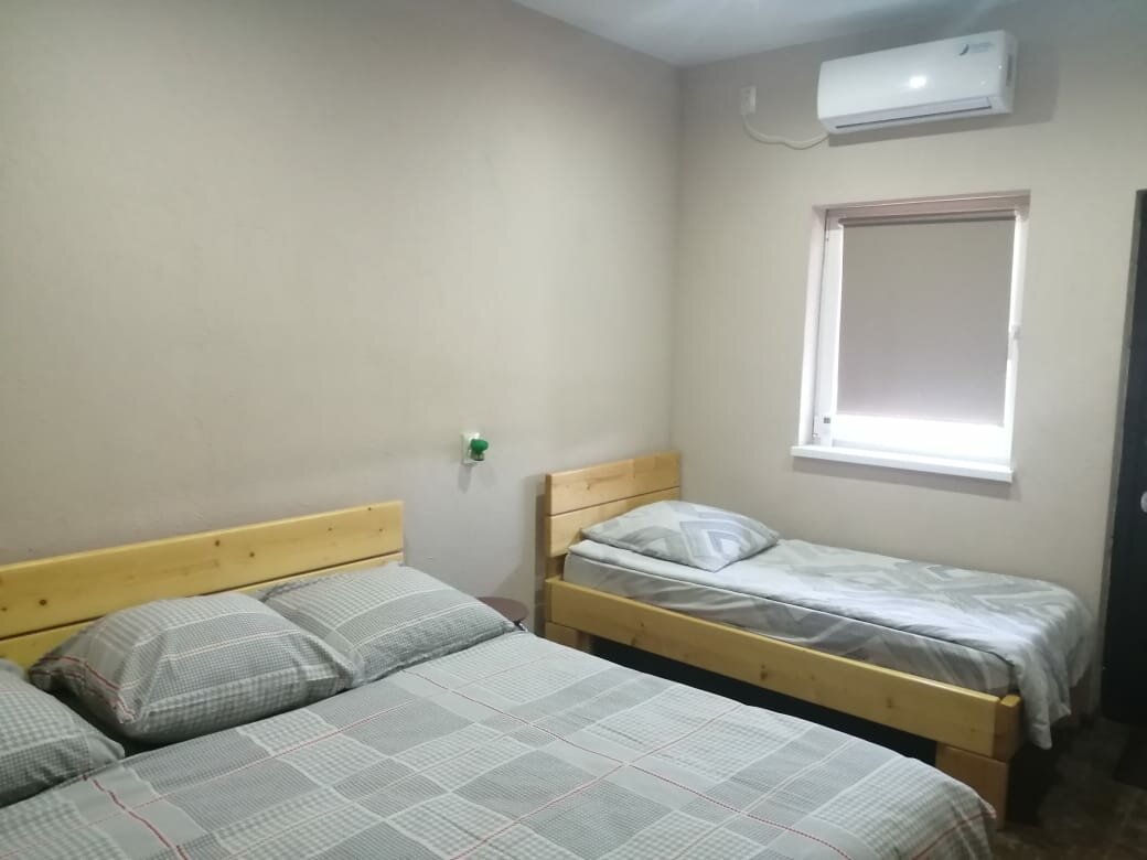 Ночлег хороший. Постели заправлены, белье постирано и поглажено. Номер убран, мусора и пыли не замечено. Душ и туалет в номере. Вода горячая с бойлера. Помыться 2 взрослым и 2 детям свободно. Кондиционер работает отлично. Один минус это отсутствие телевизора.