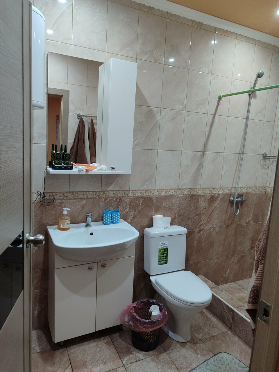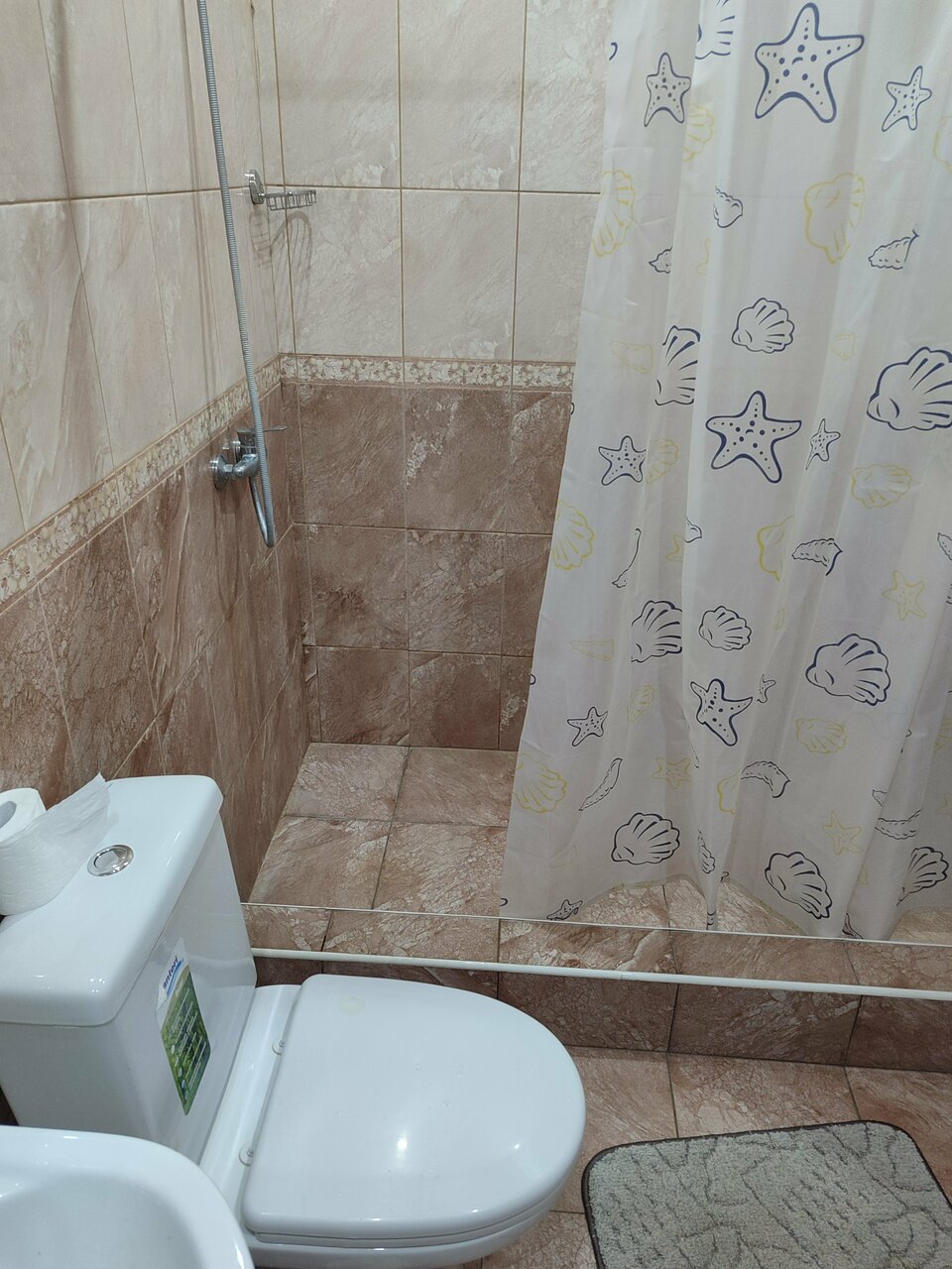 На вид ничего, но на самом деле, про кафе вообще молчу, ночлег делает лучшего, в душевую и сан узел совместно заходить не хочется даже, стоят какие то баночки, портящие вид сразу, в шкафчике грязь + рыжие усатые тараканы чайник стоит, две кружки в которых прилипли ложки, не мытое, сахар а сверху не понять что в нем, рыжие жители оставили следы возможно