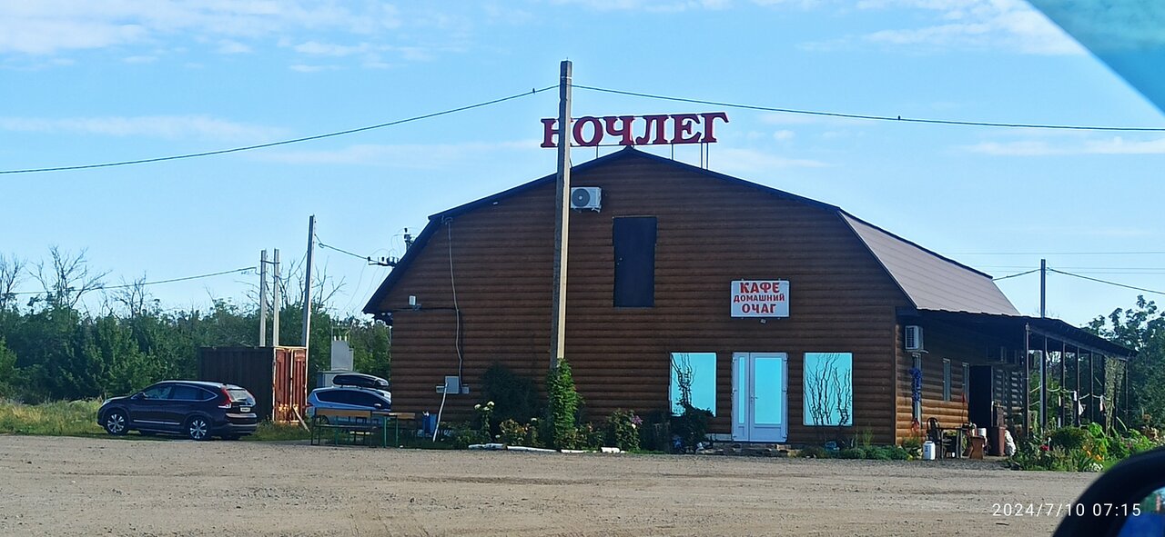 Заехали случайно, уже устали в дороге, хотелось преклонить голову и выспаться. А чем дальше от Ростова,тем меньше мотелей и отелей по трассе. Поэтому заехали наугад, заметив большую вывеску Ночлег. За три тысячи номер с большой кроватью, кондиционером, туалетом и душем. Правда, больше ничего, кроме кровати и мягкой табуреточки,в номере нет, хорошо бы небольшой холодильник и какой то столик или тумбочку. Хотя в принципе,ночь можно и обойтись. Кровать удобная, бельё чистое, подушки мягкие. Горячая вода есть. На территории есть кафе, но мы там не ели, отзыв не могу оставить. Персонал приветлив, уезжая рано утром, удивились, что на стоянке много машин, видно, приехали позже нас. Так что переночевать вполне можно.