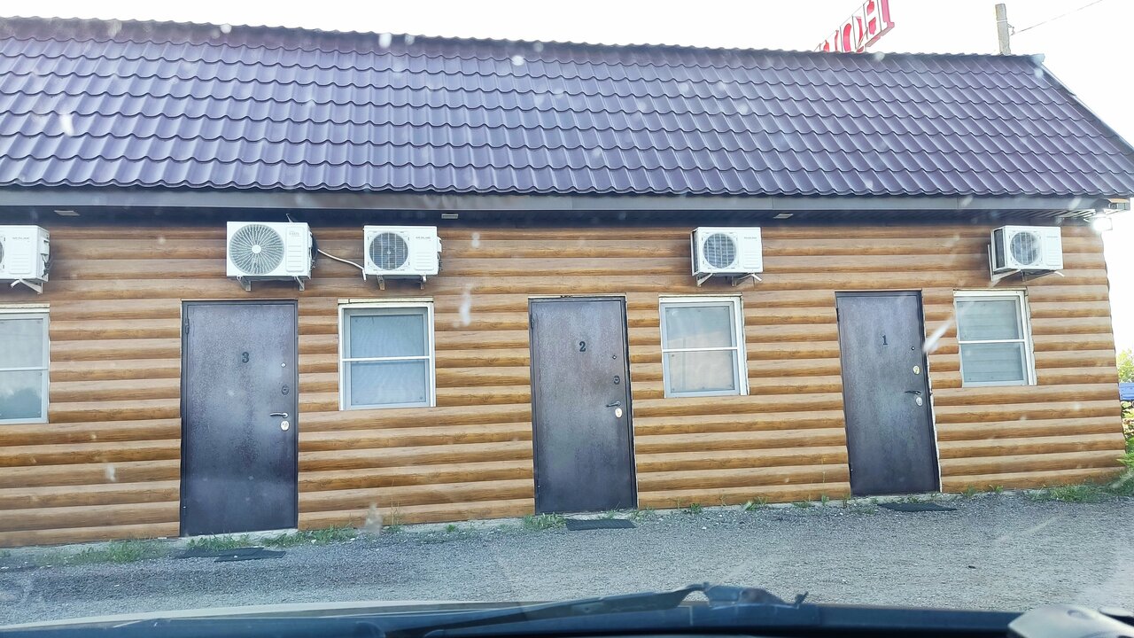 Останавливались в октябре 23 года в трёхместном номере по цене двухместного, туалет, душ, горячая вода в номере) номер довольно чистый, есть ТВ, полотенца, гель для душа. Рядом кафе с нормальной едой и приемлемыми ценами. Не смотря на близость к дороге, в номере почти тихо