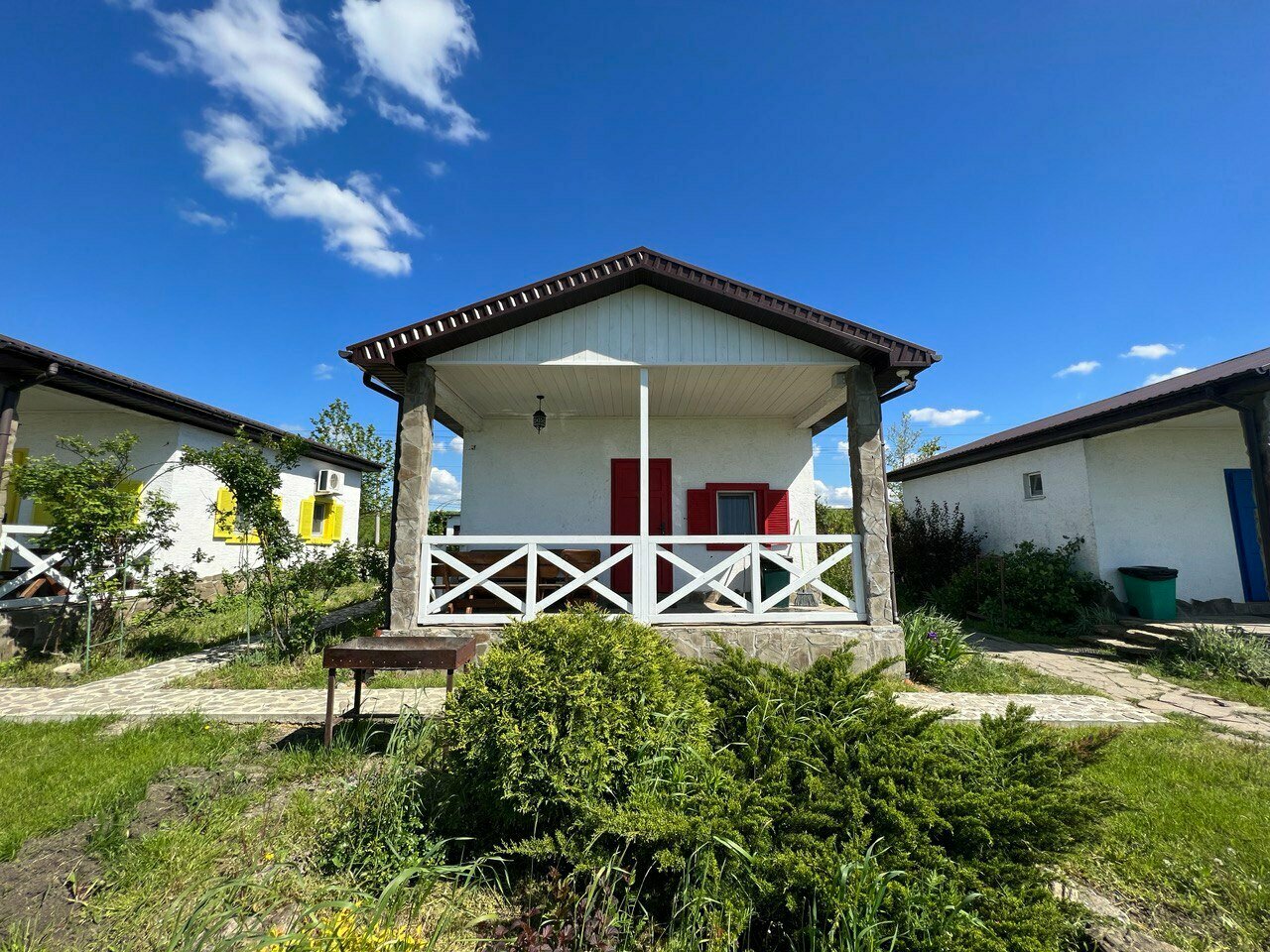 Останавливались семьей на 2 недели. Уютные домики — бунгало после ремонта, все очень чисто. Есть детские кроватки, стульчики, плитка, холодильник, вся необходимая посуда, мангальная зона. Отличное место, чтобы совместить катание в вейк-парке, поездки на море и винодельни и вечернее барбекю:)