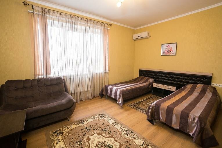 Останавливались по дороге в Крым. Номер чистый. Приятно, что в номерах запрещено курить, поэтому нет специфического запаха. Одну звезду снимаю за расположение отеля, а вторую за невнимательность персонала. У нас был номер на троих, а полотенца были только для двоих… и на мой вопрос ‘почему?’ Был невнятный ответ администратора: ‘номера готовят на двоих, мало ли вы вдвоем только приедете?’…. Занавес!!! Администрация, ну что значит ‘мало ли…’, если номер бронировался на 3х, значит и готов должен быть на 3х….