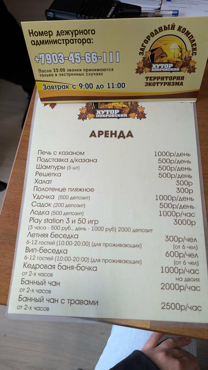 Скачать прайс-лист Загородный комплекс Хутор Покровский на январь 2026 годаАдрес гостиницы на карте