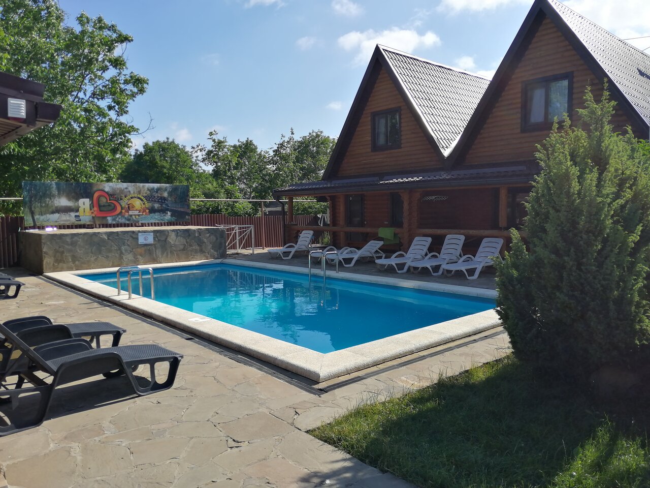 Все хорошо, но…. Когда дети купались в бассейне, мальчик 16 лет разбил голову и ему наложили 3 шва. Ещё, около бассейна есть подвал, не загорожена лестница. Вечером это не видно и….. Тоже ЧП. В результате разбита голова и много ушибов у взрослого мужчины. Надо было вызывать скорую и палицию.
