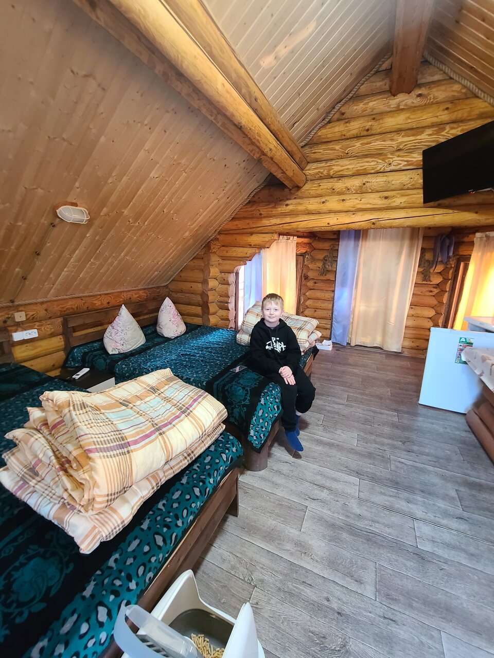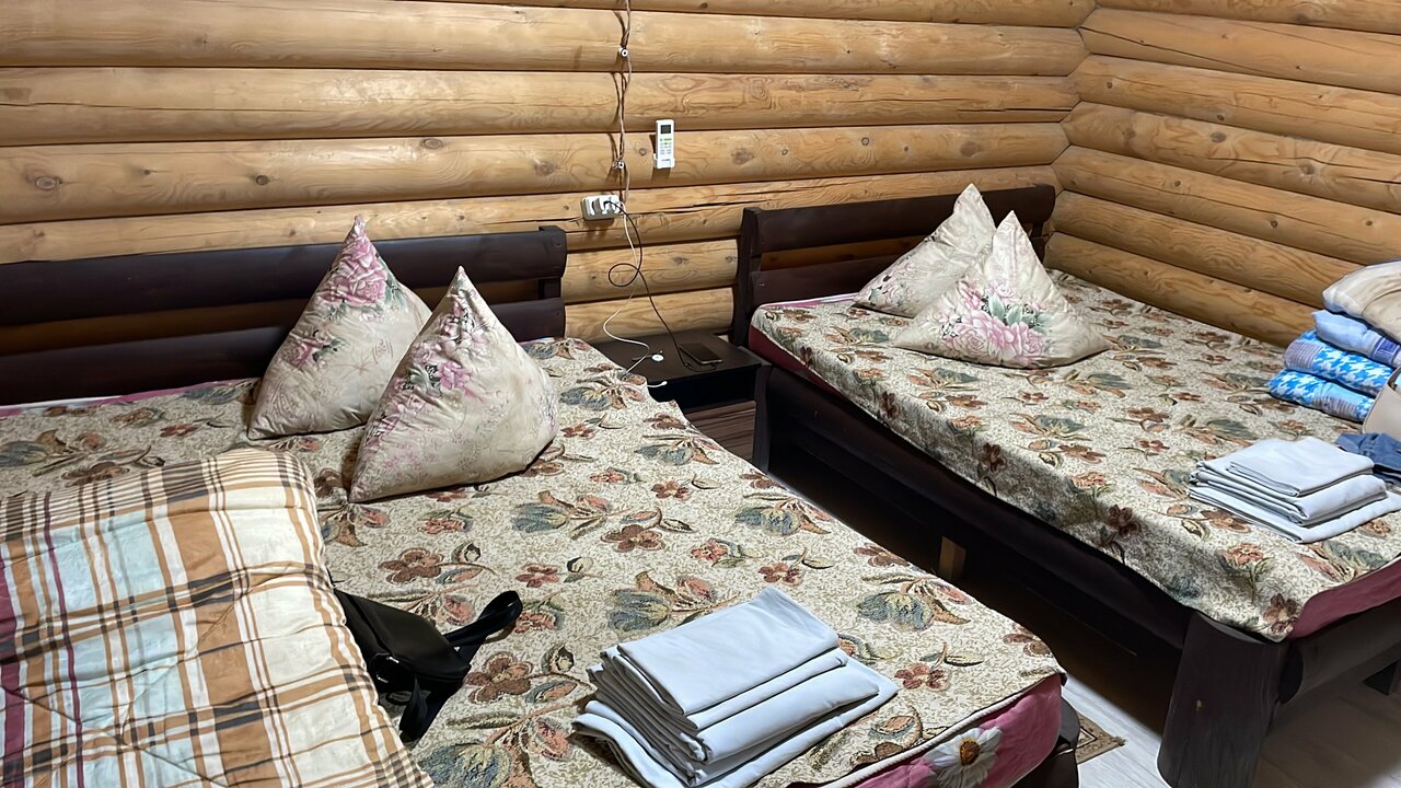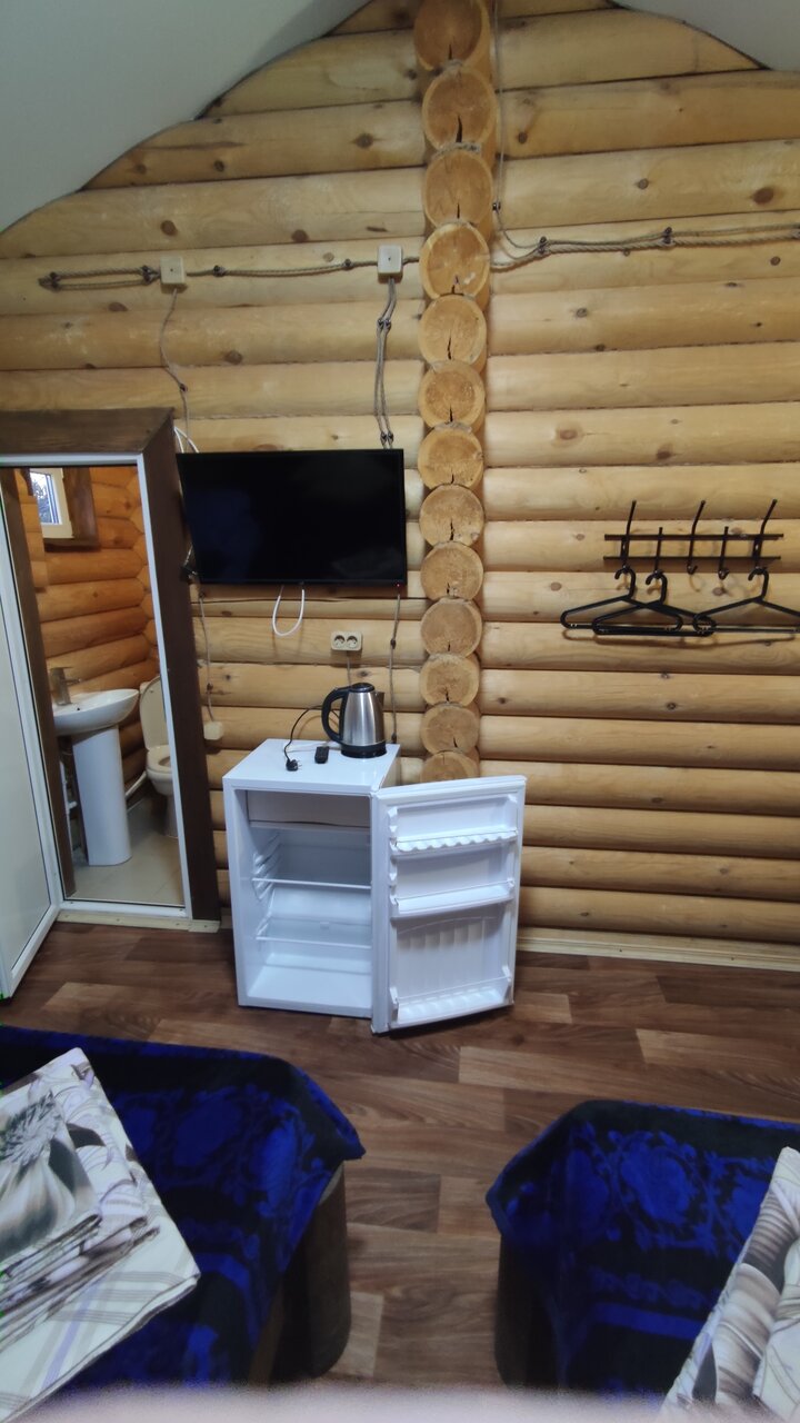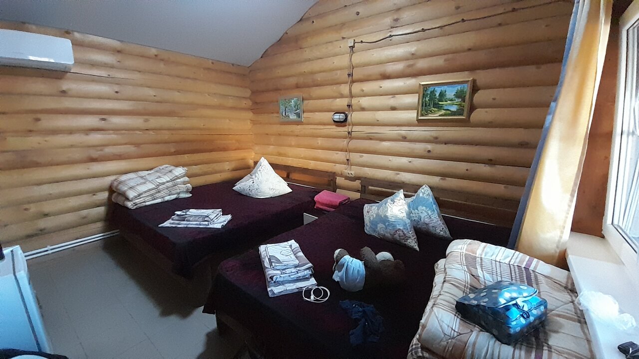 Замечательное место бронировали на одну ночь через букинг и не разу не пожалели. Всем советуем заселились в экодом сразу при въезде 🙂 тёплый уютный, большие да же огромные кровати хотя матрасы уже немного потрепались но после дороги самое то что бы упасть поспать. На территории есть домашнее кафе по ценам нормальное ассортимент небольшой. Очень вкусные домашние пельмешки в 23:30. Советуем побывать тут