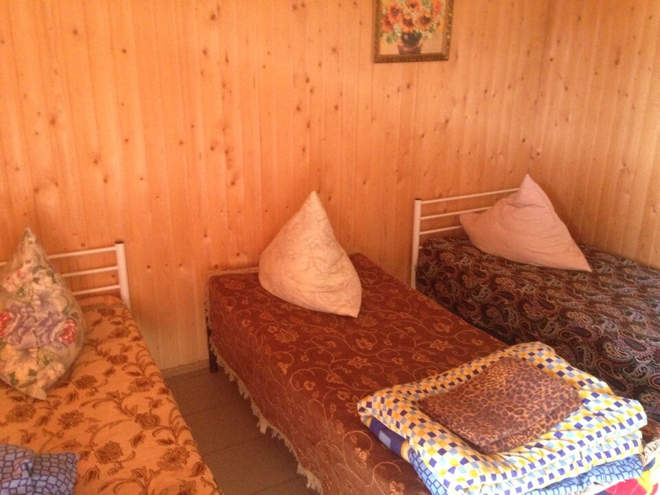 Домик рассчитан на 4 человек. В номере две двуспальные кровати, цифровое ТВ (телеканал Карусель и Матч в пакете), холодильник. Кондиционер. Удобства в номере. Парковка возле домика.