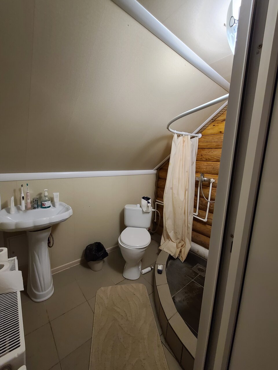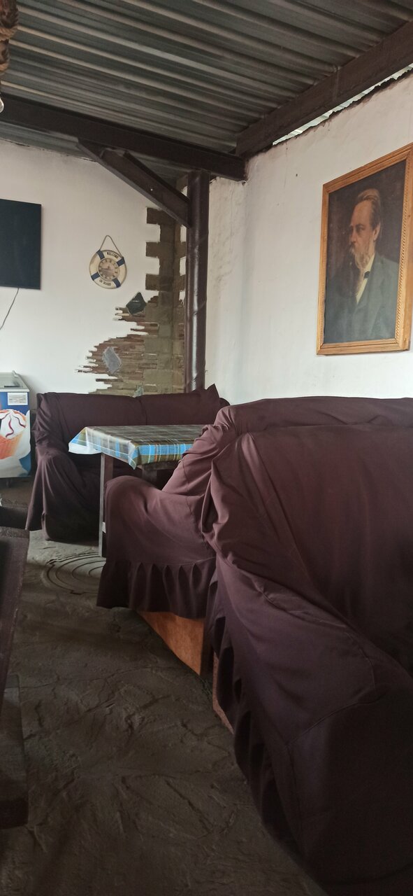 Комната на втором этаже очень не удобная крыша под наклоном для высокого человека лечь на кровать только согнувшись, ночью если сядешь на кровати удоряешься головой об потолок. Душь и туалет общий в коридоре на 4 комнаты.Тоесть это только поспать и в путь. Столовая вообще ужас просто анти санатория.. Один человек и на рецепшн и повар на кухне, не знаю может это только ночью.