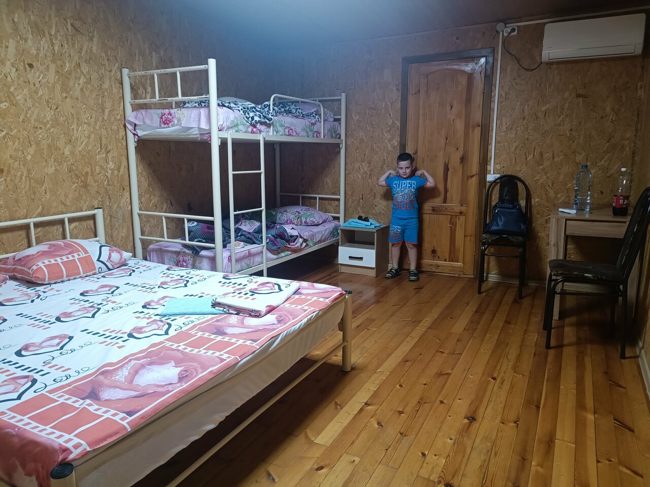 Уютный отель с душем и туалетом в номере. Цена на 4 спальных места 2200 руб( одна двуспальная и две односпальные кровати (есть двухярусные варианты). В номере телевизор, кондиционер. В стоимость включена парковка. Приветливый персонал, большое меню, большие порции. Кафе круглые сутки! Зачёт!